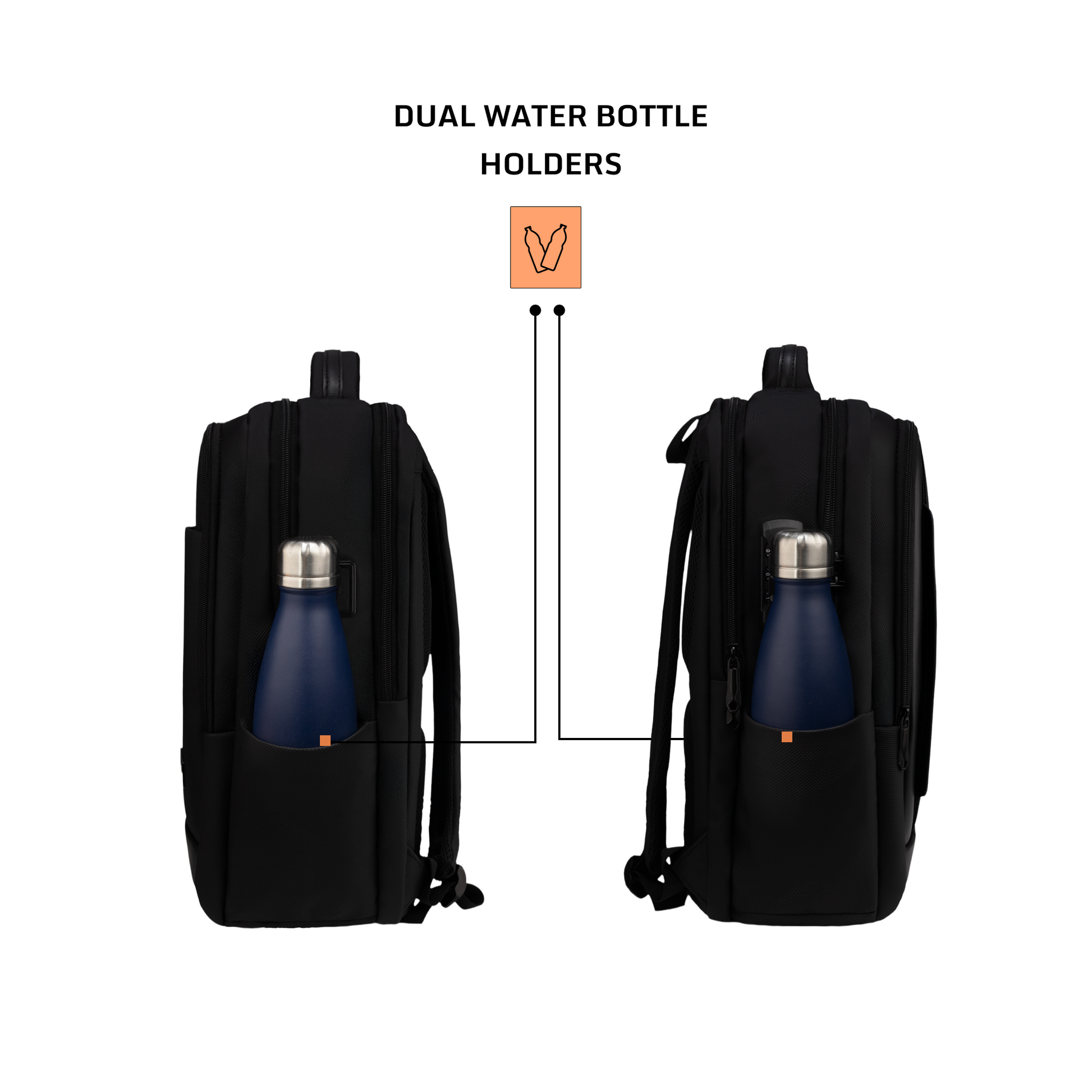 The F Gear Alpha Premium Black Laptop Backpack is designed for modern professionals who need a combination of space, organization, and security. Offering a 25L capacity, it comes with 3 large compartments and 2 utility pockets, providing ample storage for a 17-inch laptop, gadgets, and documents. It includes USB and Type C charging ports for on-the-go power and a number lock for enhanced safety. Made from premium water-resistant material, the Alpha ensures durability and weather resistance. Designed for comfort, it features an ergonomic padded back panel, soft shoulder straps, and 2 water bottle holders. The luggage strap makes it ideal for travel and daily commuting. Dimensions: 31 x 18 x 45 cm Weight 1190 G. Protected by a 1-year carry-in warranty from F Gear, ensuring dependable quality and peace of mind.