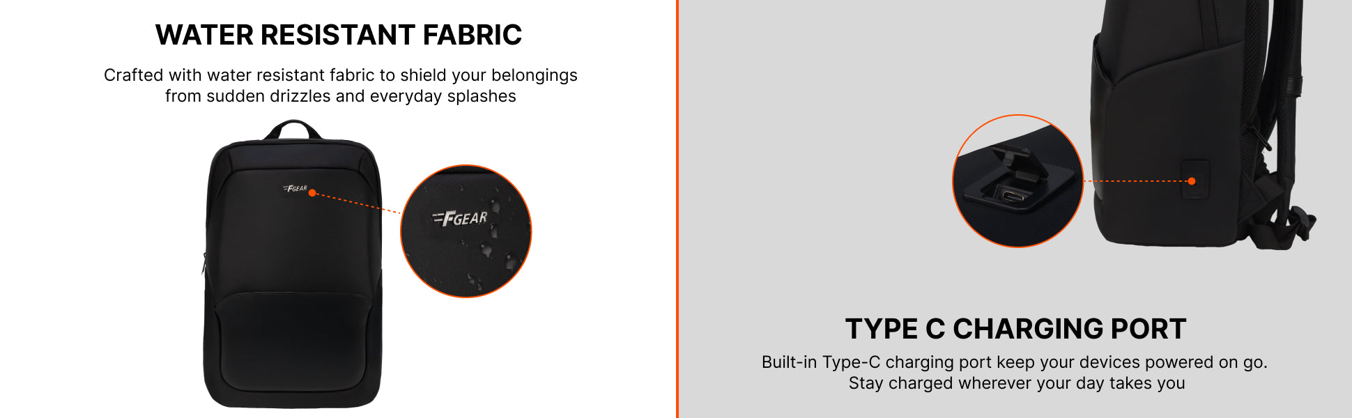 Designed with a built-in Type-C charging port, it ensures your devices stay powered through long commutes, busy schedules and travel days. The premium water-resistant fabric maintains its shape and smooth finish while protecting your belongings from light spills and everyday wear.