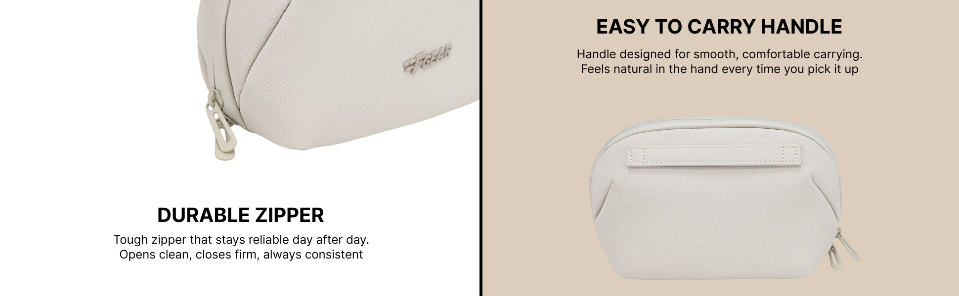The F Gear Belvoir Premium Cream Pouch is a beautifully designed everyday organizer, perfect for those who value elegance, simplicity and versatility. With its clean cream finish and compact silhouette, it effortlessly transitions from office bags to handbags, backpacks and carry-ons.
