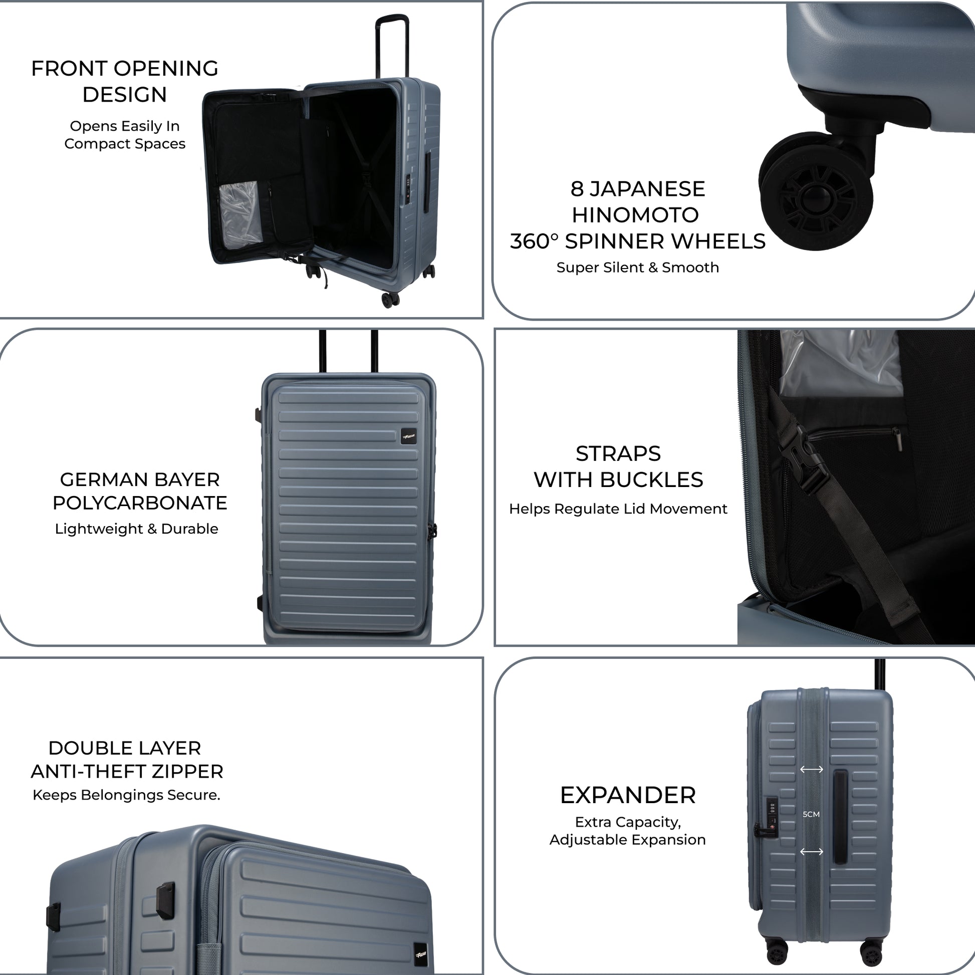 -  Front-Opening Smart Access – Features a practical front-opening compartment that allows easy organisation and quick access to essentials, making it especially useful in tight spaces during travel.