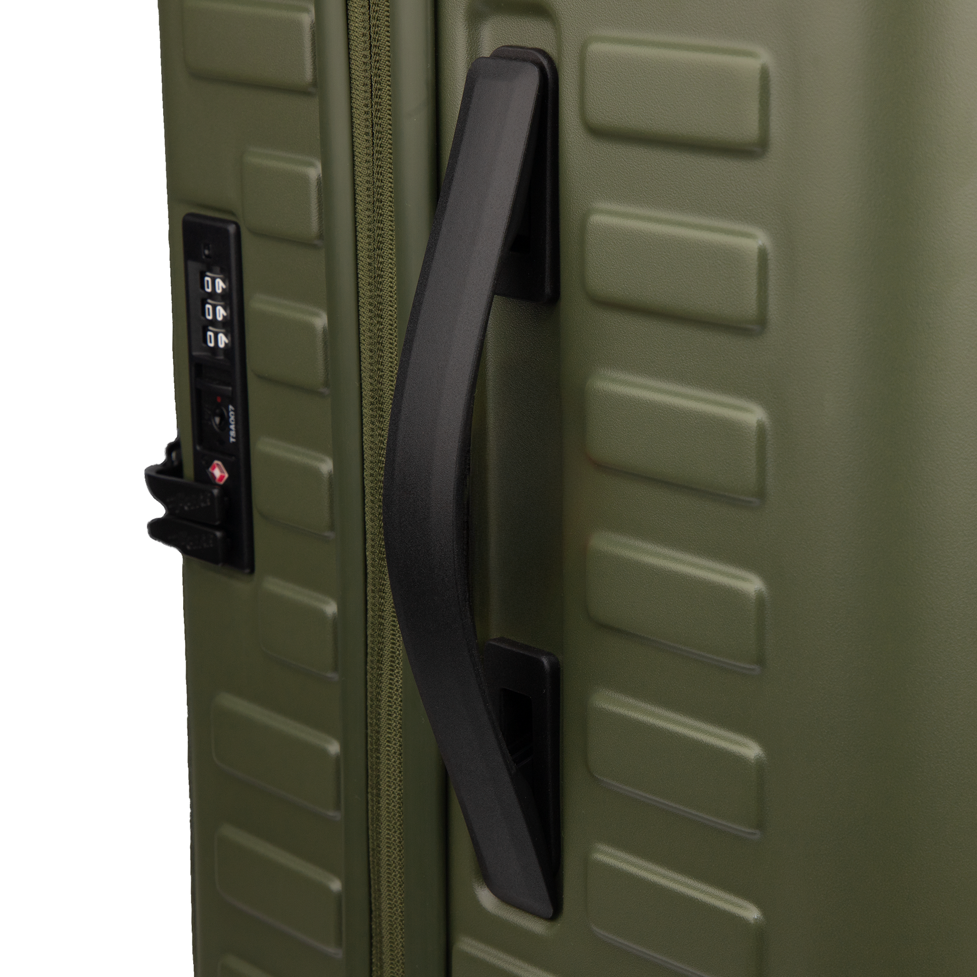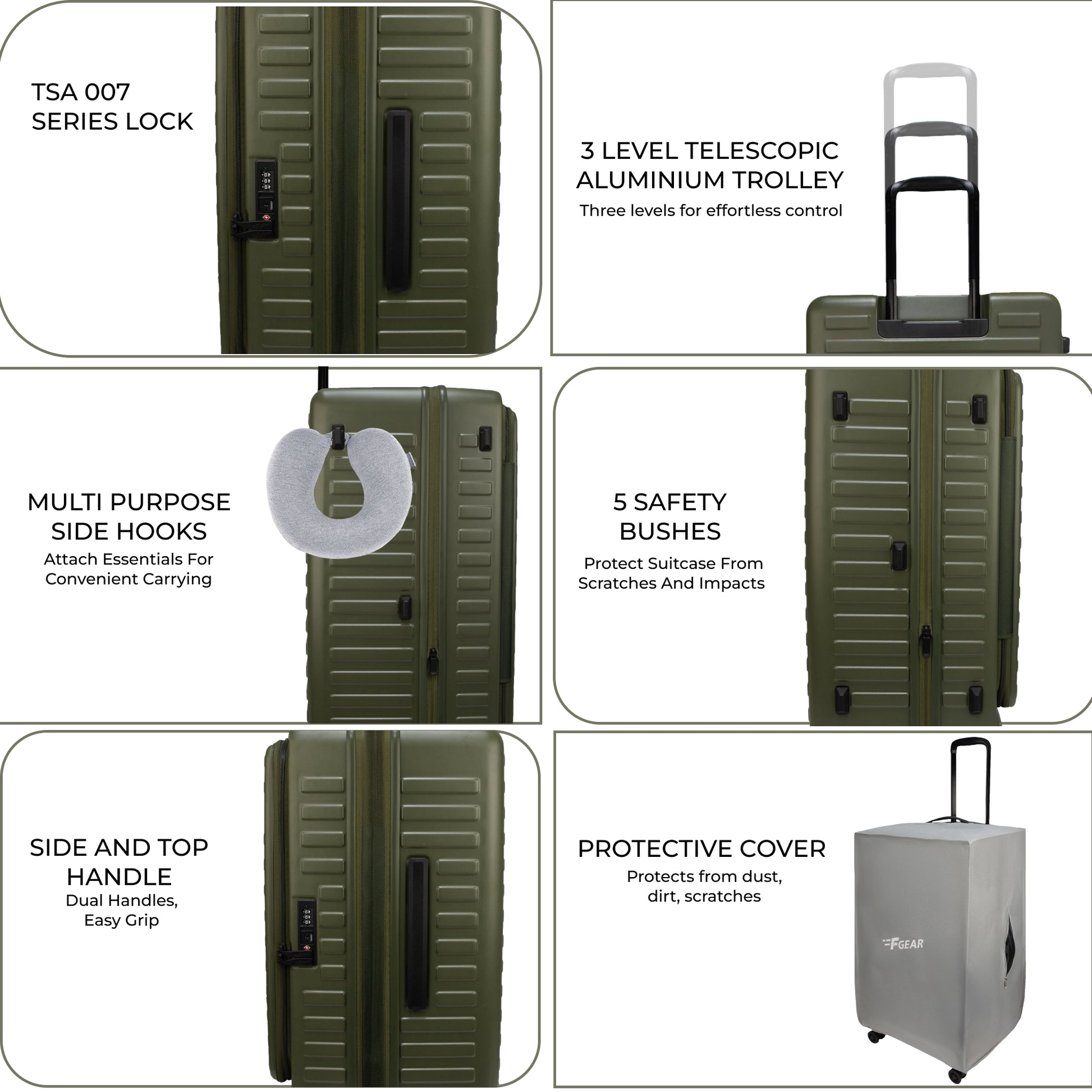 Handling is effortless with the 3-level telescopic aluminium trolley, supported by top and side handles for easy lifting and manoeuvring. For security, the suitcase is equipped with an anti-theft zipper and a reliable TSA 007 series number lock, ensuring international travel safety and airport-friendly security checks. The included protective luggage cover keeps your strolley clean and protected between trips.