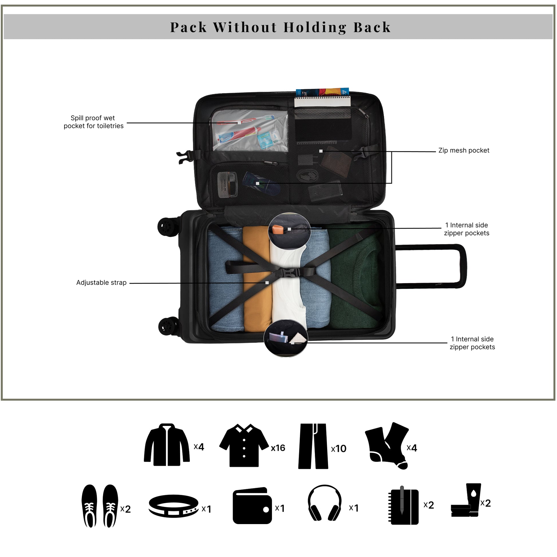 - Front-Opening Smart Access – Features a practical front-opening compartment that allows easy organisation and quick access to essentials, making it especially useful in tight spaces during travel.