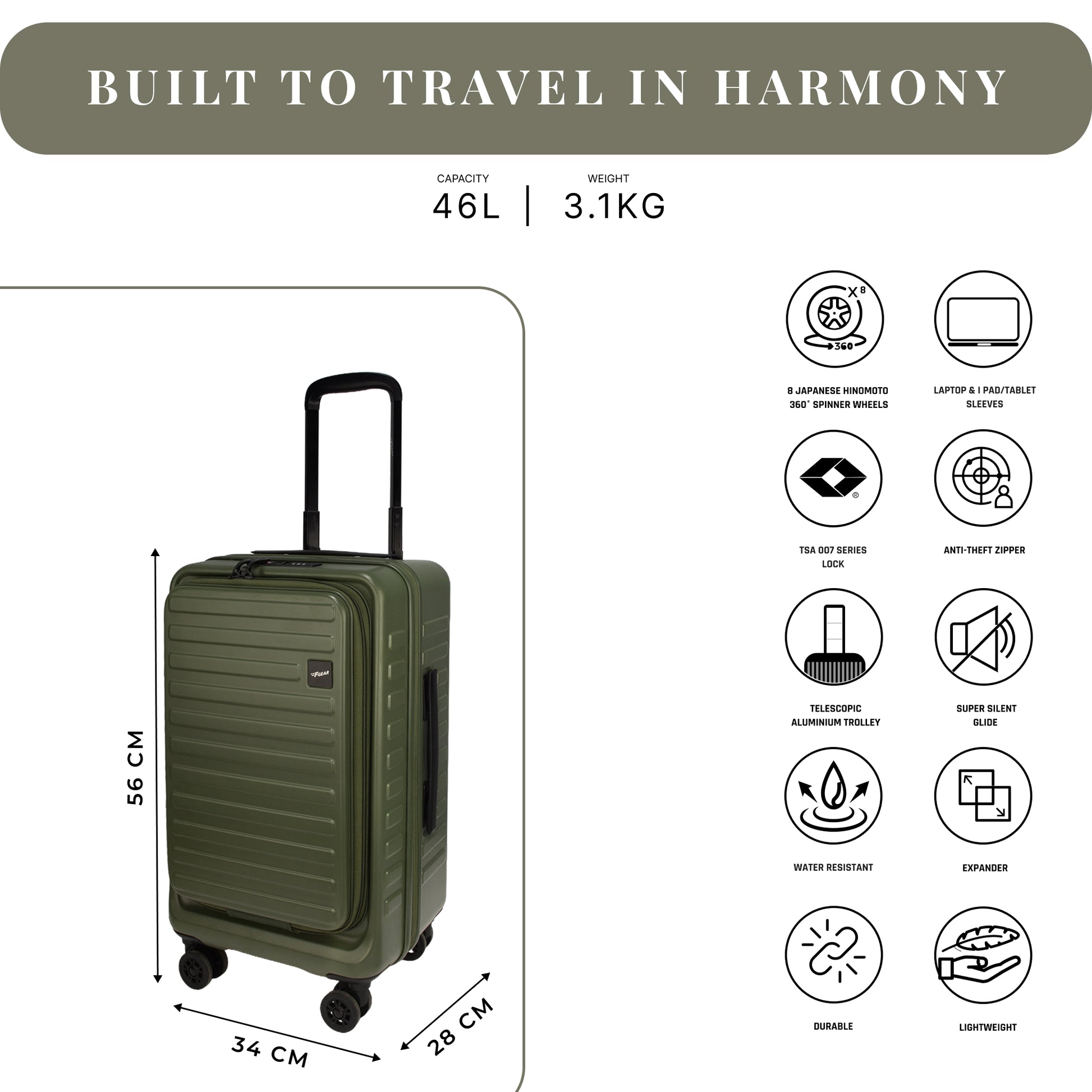 - Premium Mobility & Durable Build – Engineered with 8 Japanese Hinomoto 360° spinner wheels for a smooth & silent glide and a German Bayer Polycarbonate shell that’s impact-resistant yet lightweight at just 3.1 kg.