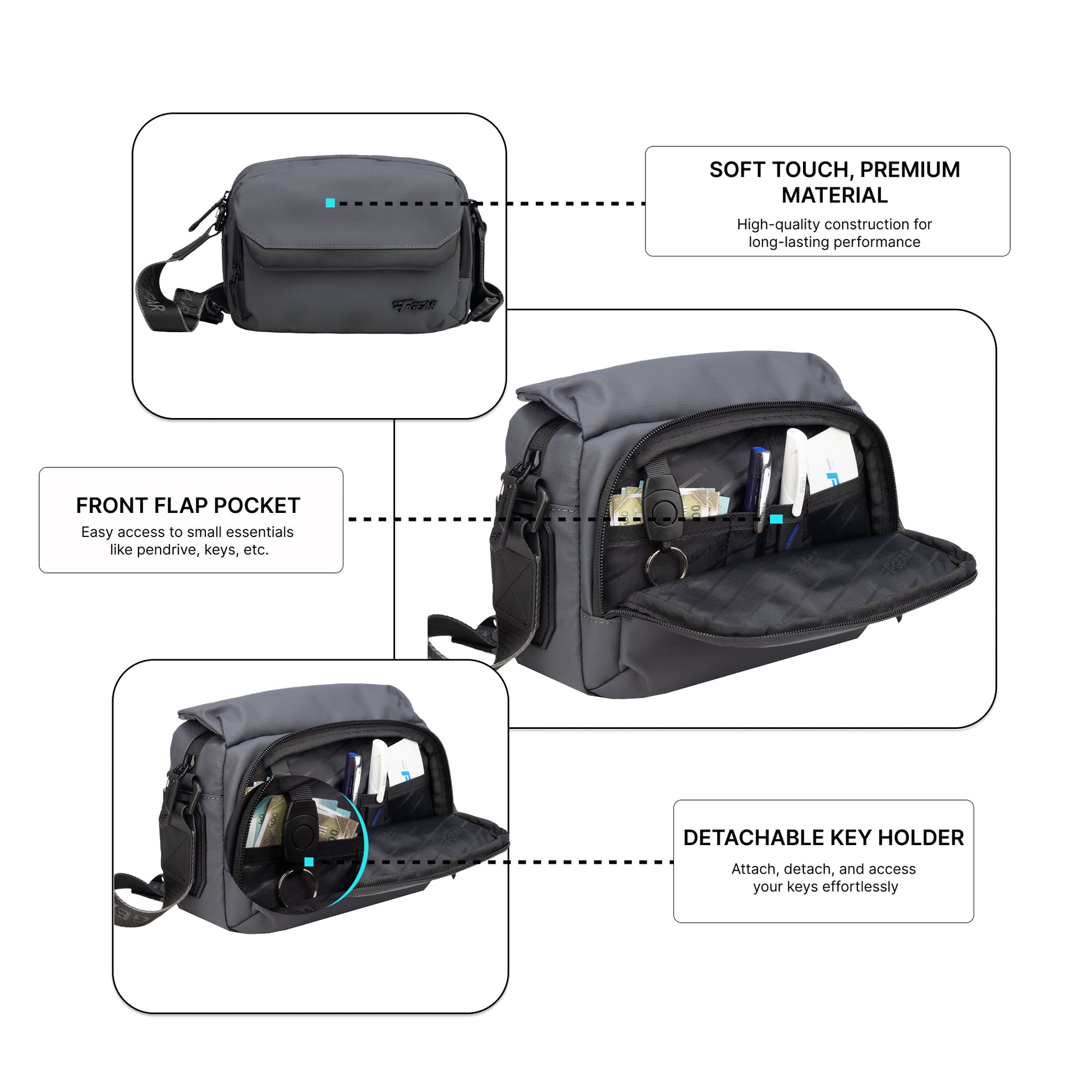 Girona 3L Grey Soft Crossbody Sling Bag