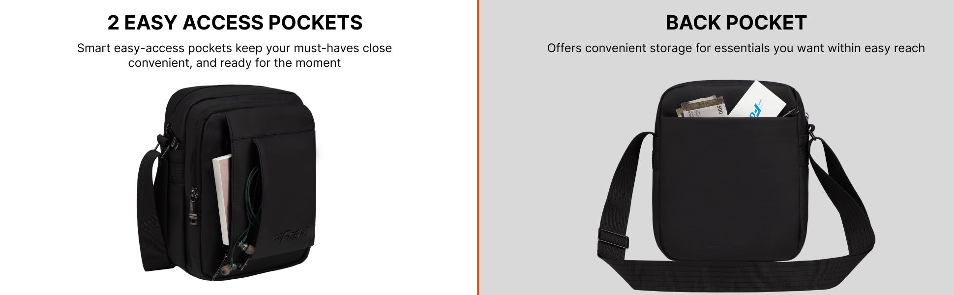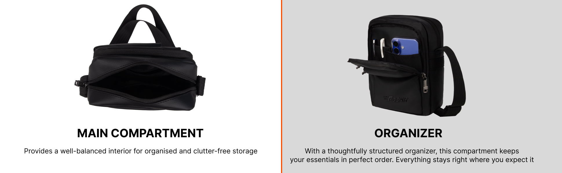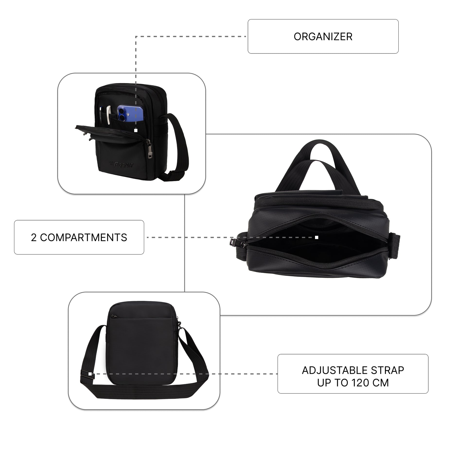 - Smart Organisation – 2 compartments with 3 pockets to keep essentials sorted.