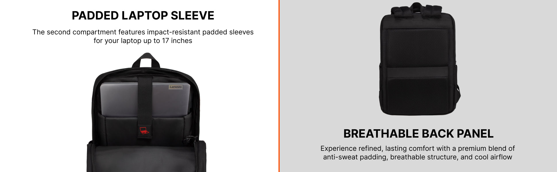 - Laptop, Tablet & Tech Ready – Comfortably fits up to a 17” laptop, includes a dedicated tablet sleeve, and features USB & Type-C charging ports to stay powered on the go.