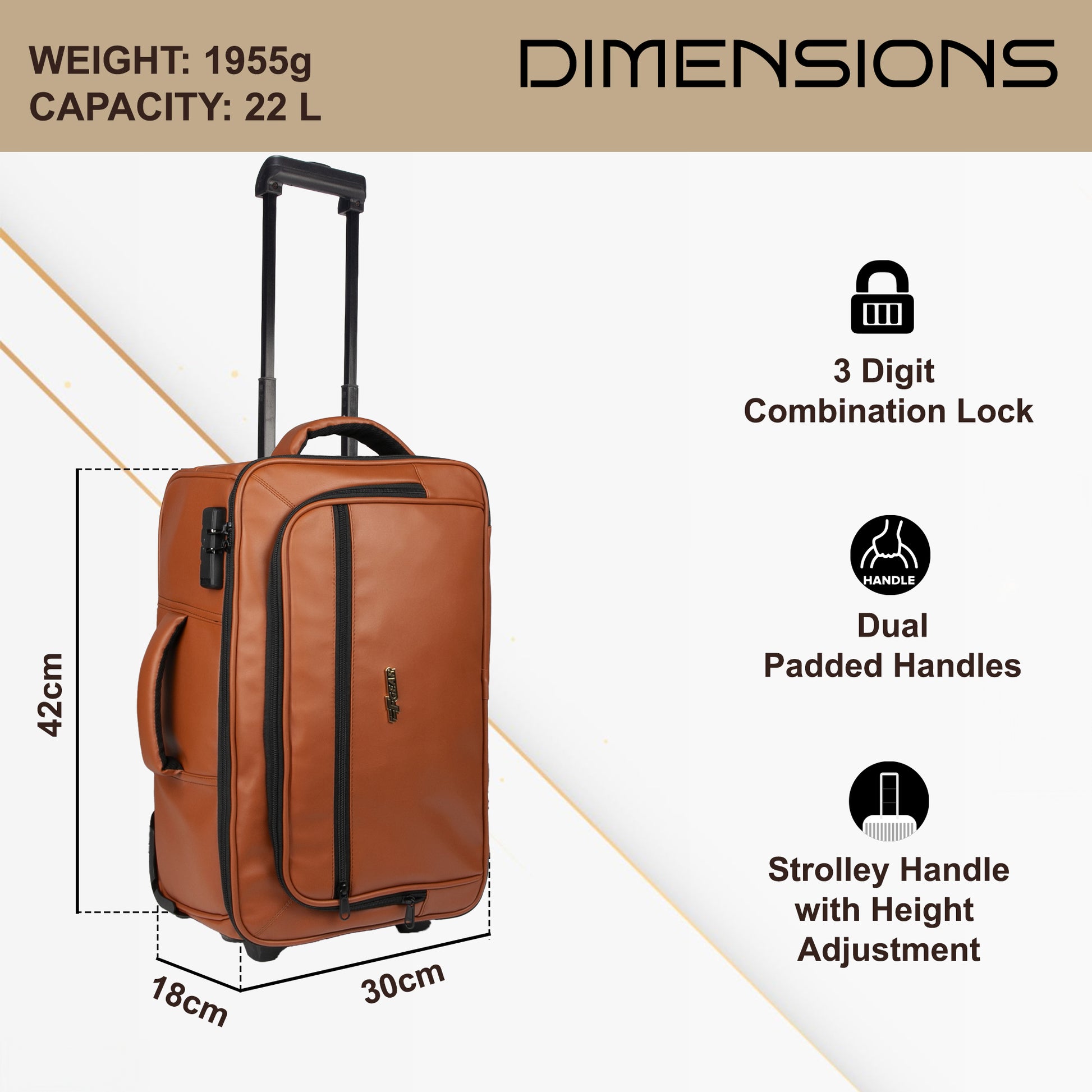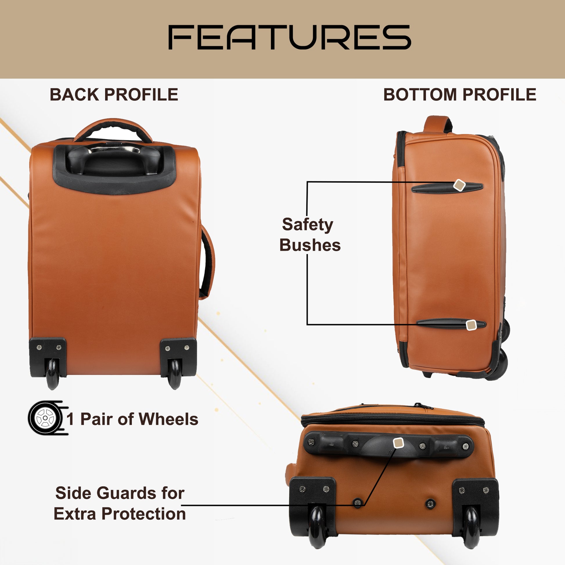 - Premium Faux Leather fabric, High quality advanced YKK zippers, water-resistant, Combination Lock, compression strap, metal logo finish, 2 Wheels, push-button locking handle, enabling customizable handle height adjustments for your ideal comfort level.