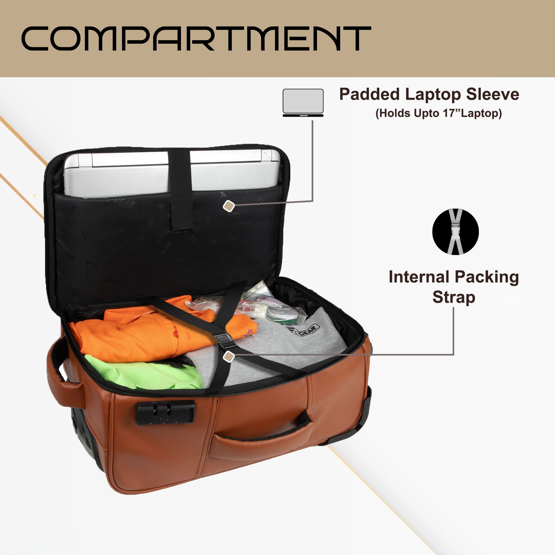 F Gear presents Luxurious and Durable suitcase trolley bag with its spacious compartment and smooth-rolling wheels, it effortlessly combines style with functionality, ensuring seamless travel experience wherever your journey takes you. With a dedicated laptop compartment, your tech essentials are securely placed, granting you peace of mind during your travels. Plus, with the added convenience of a 3 digit combination locking system, your belongings remain safe and sound. Elevate your travel experience with our perfect business travel partner.