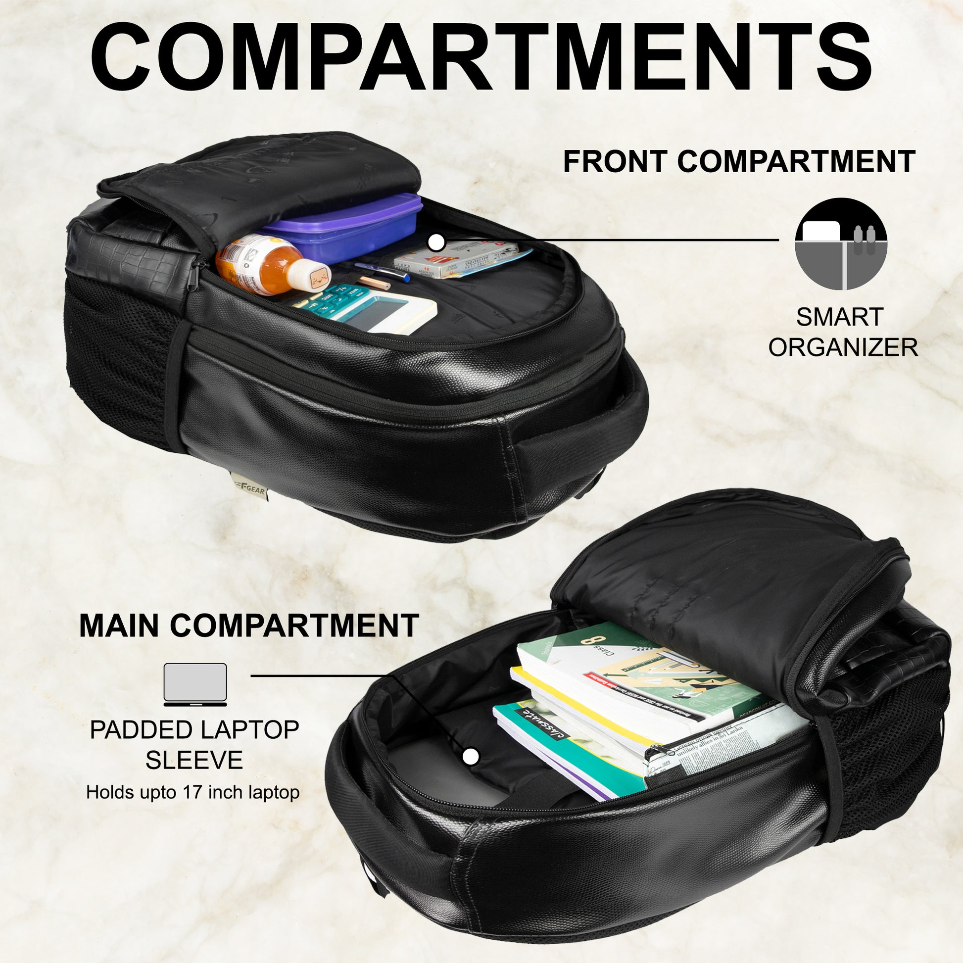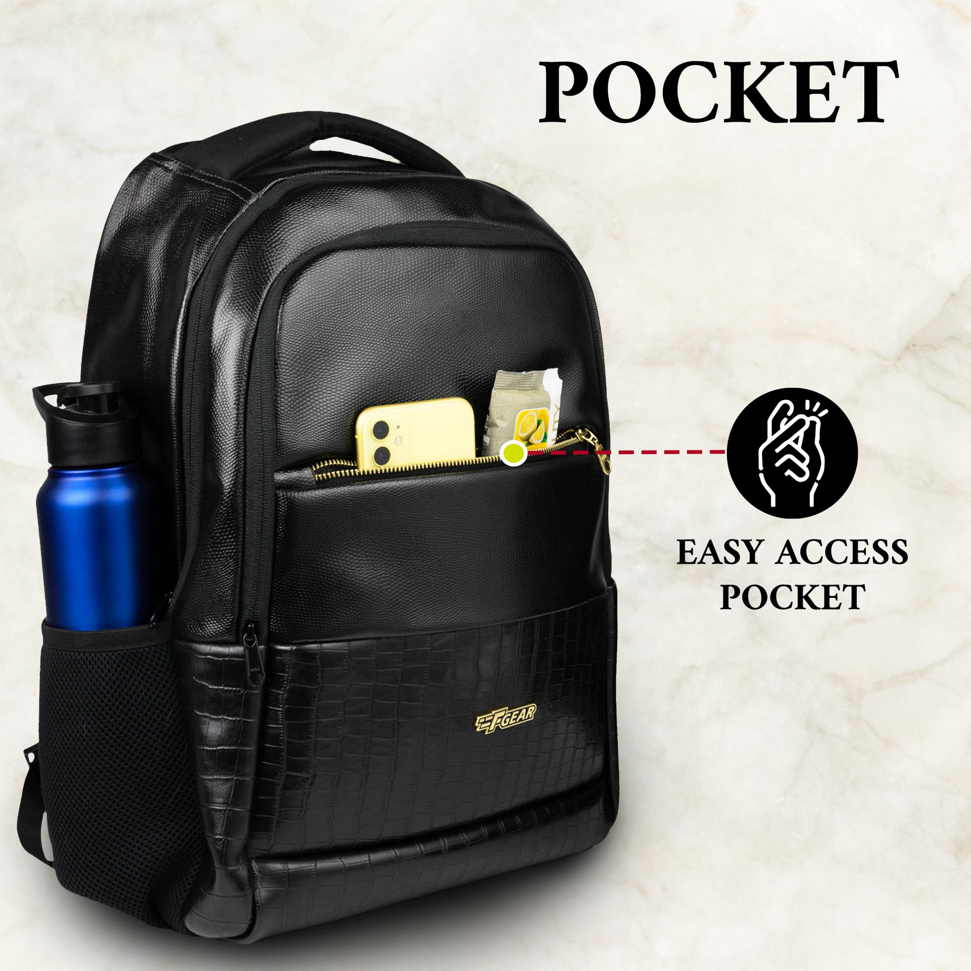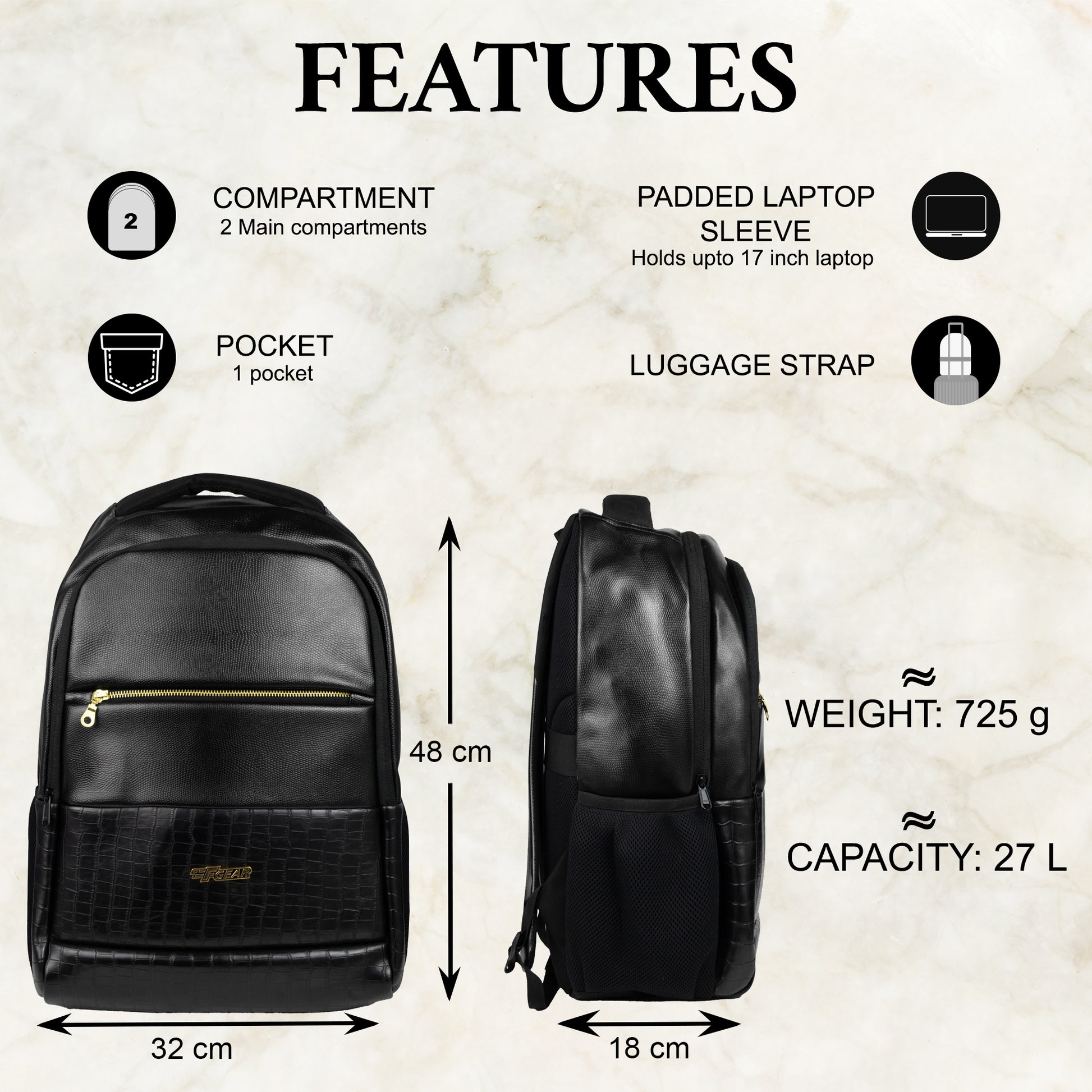 Mastermind 27L Black Vegan Leather Laptop Backpack