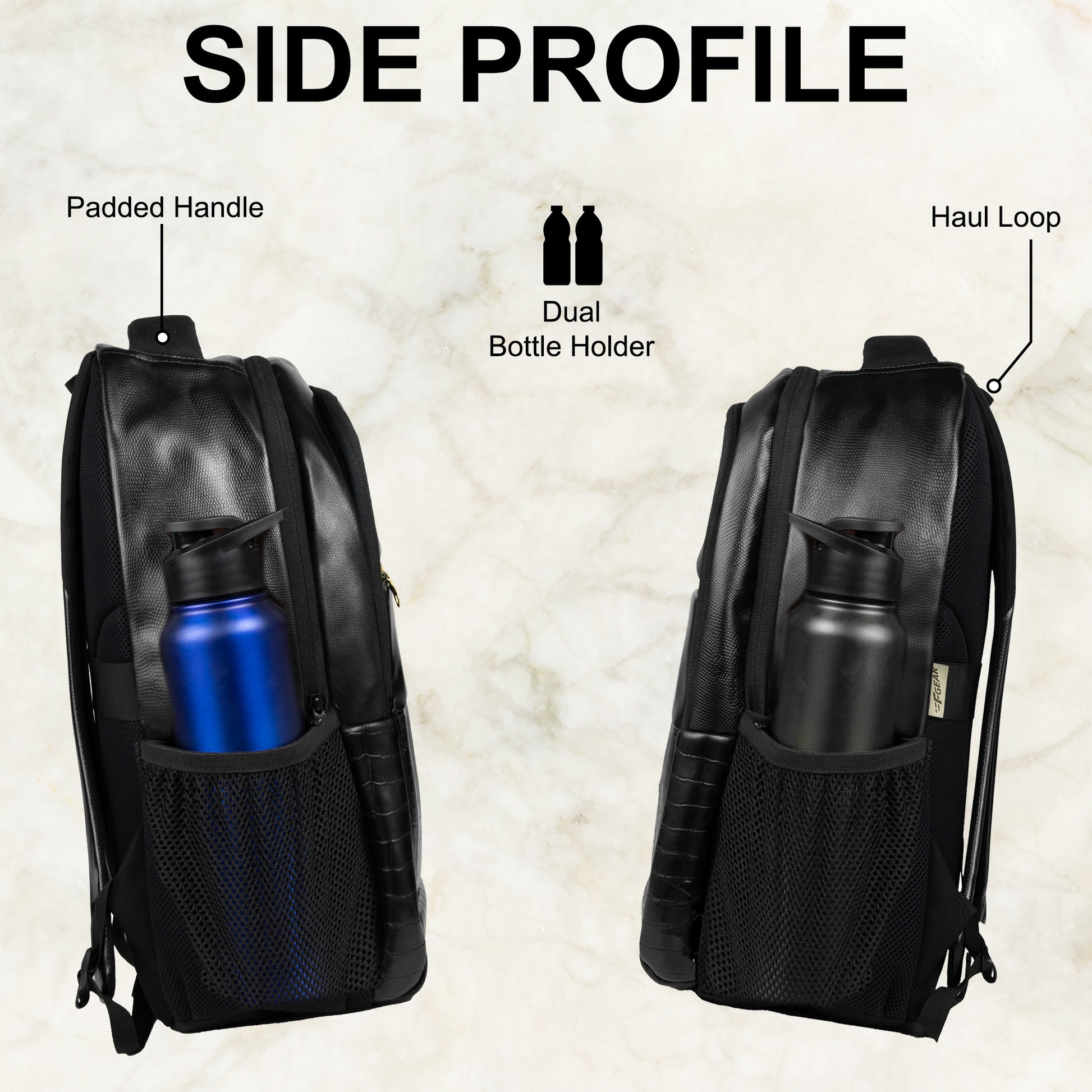 - Has 2 compartments, 1 front pocket, and 2 bottle holders. Premium pro backpack with a fully padded front, an aesthetic metal logo finish, and a spacious easy-access pocket, perfect for quickly grabbing essentials like mobile, tickets, keys, chargers, or other accessories.