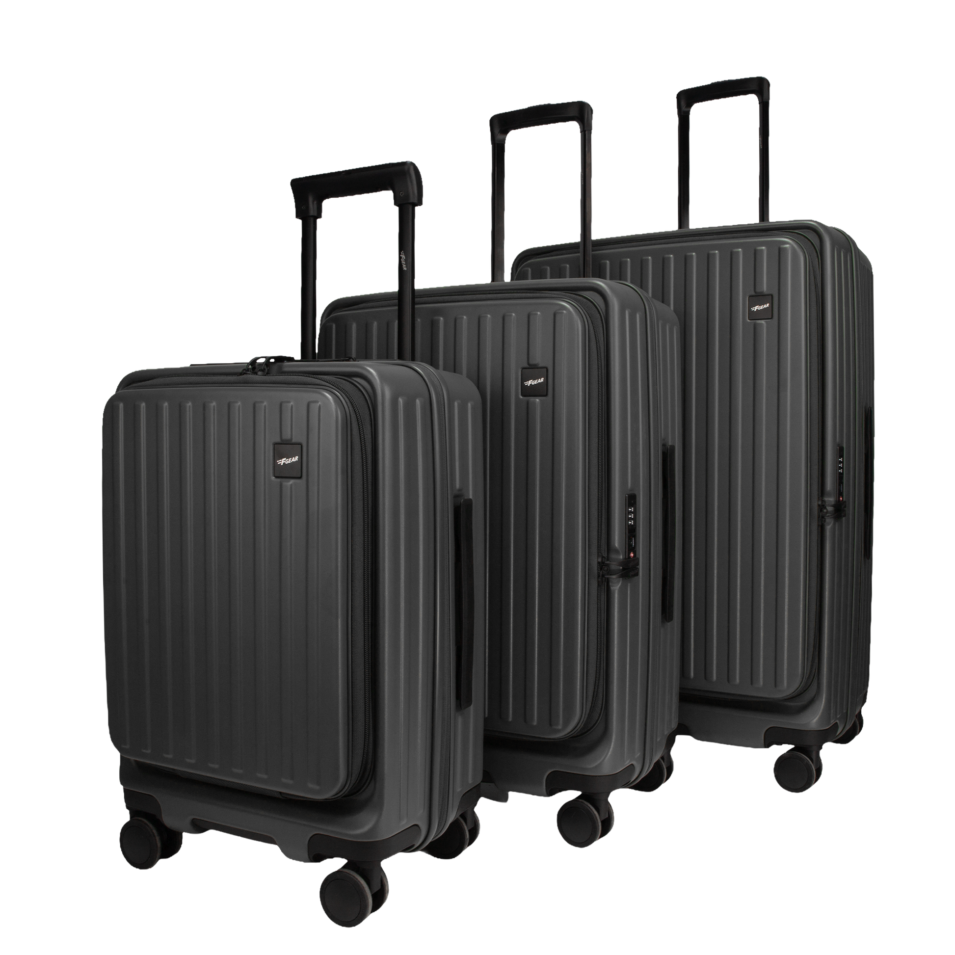 Montreal Front-Opening Strolley Steel Grey Set of 3 Suitcases