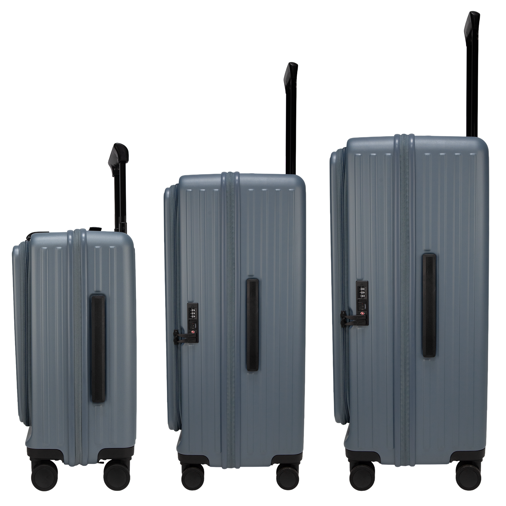 Montreal Front-Opening Strolley Stone Blue Set of 3 Suitcases