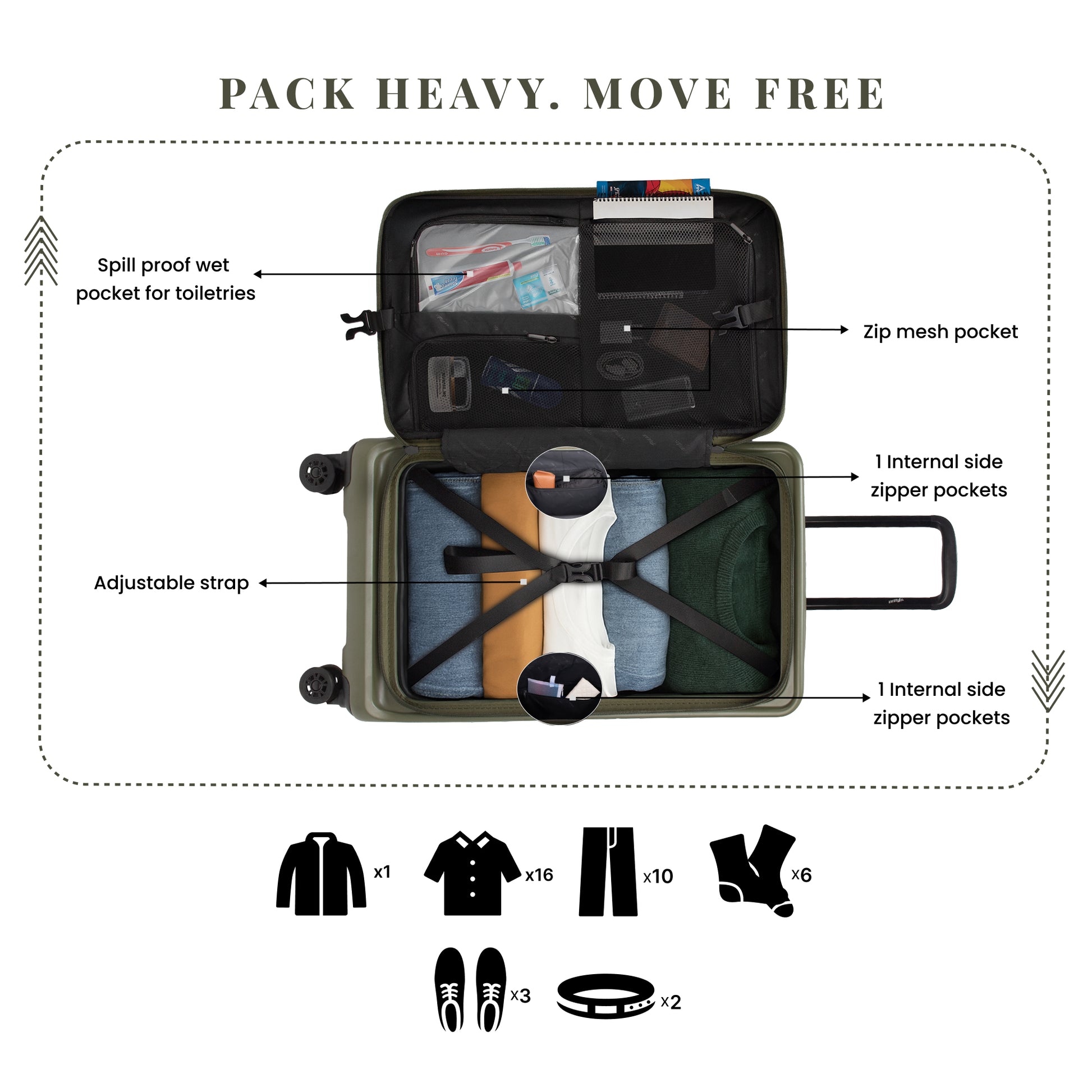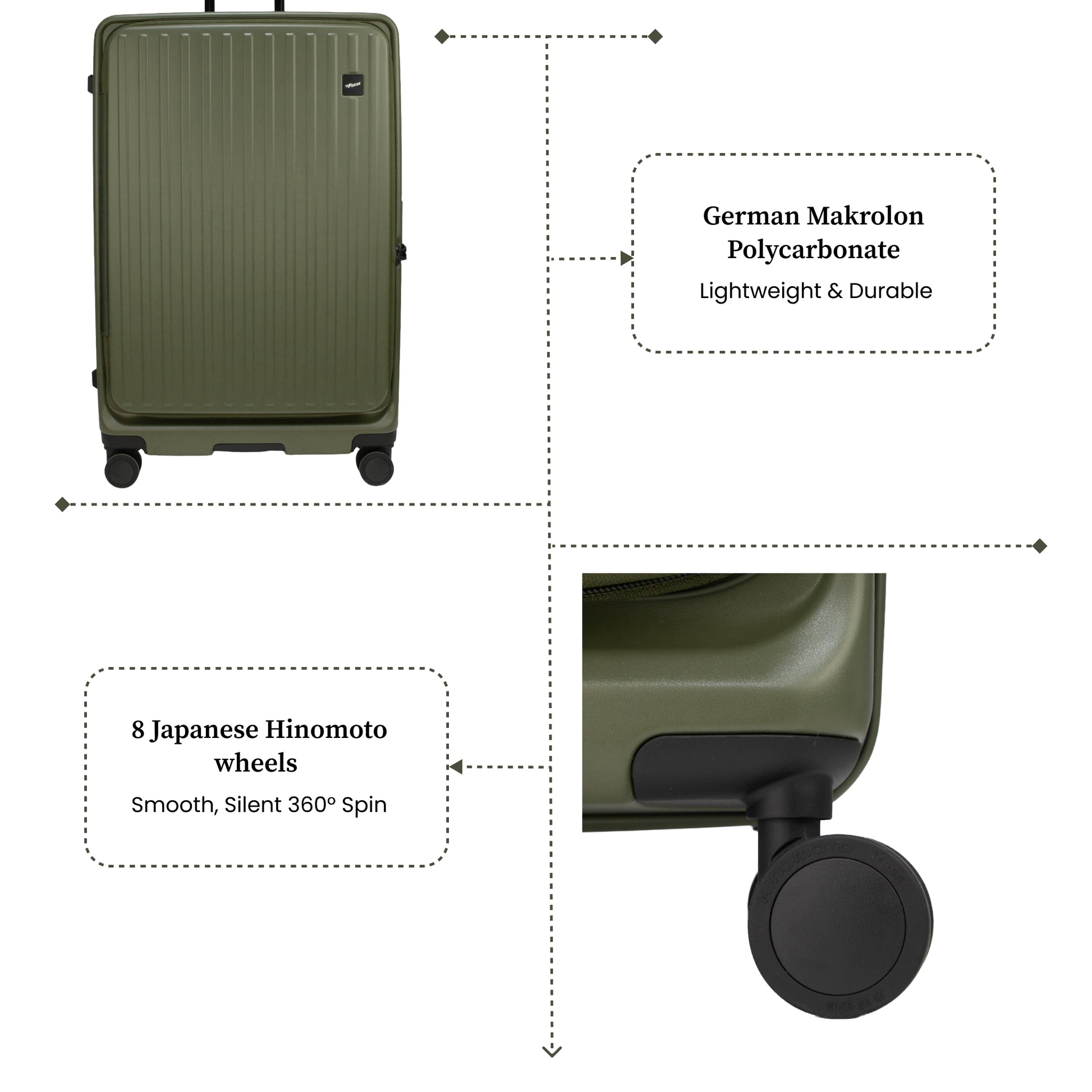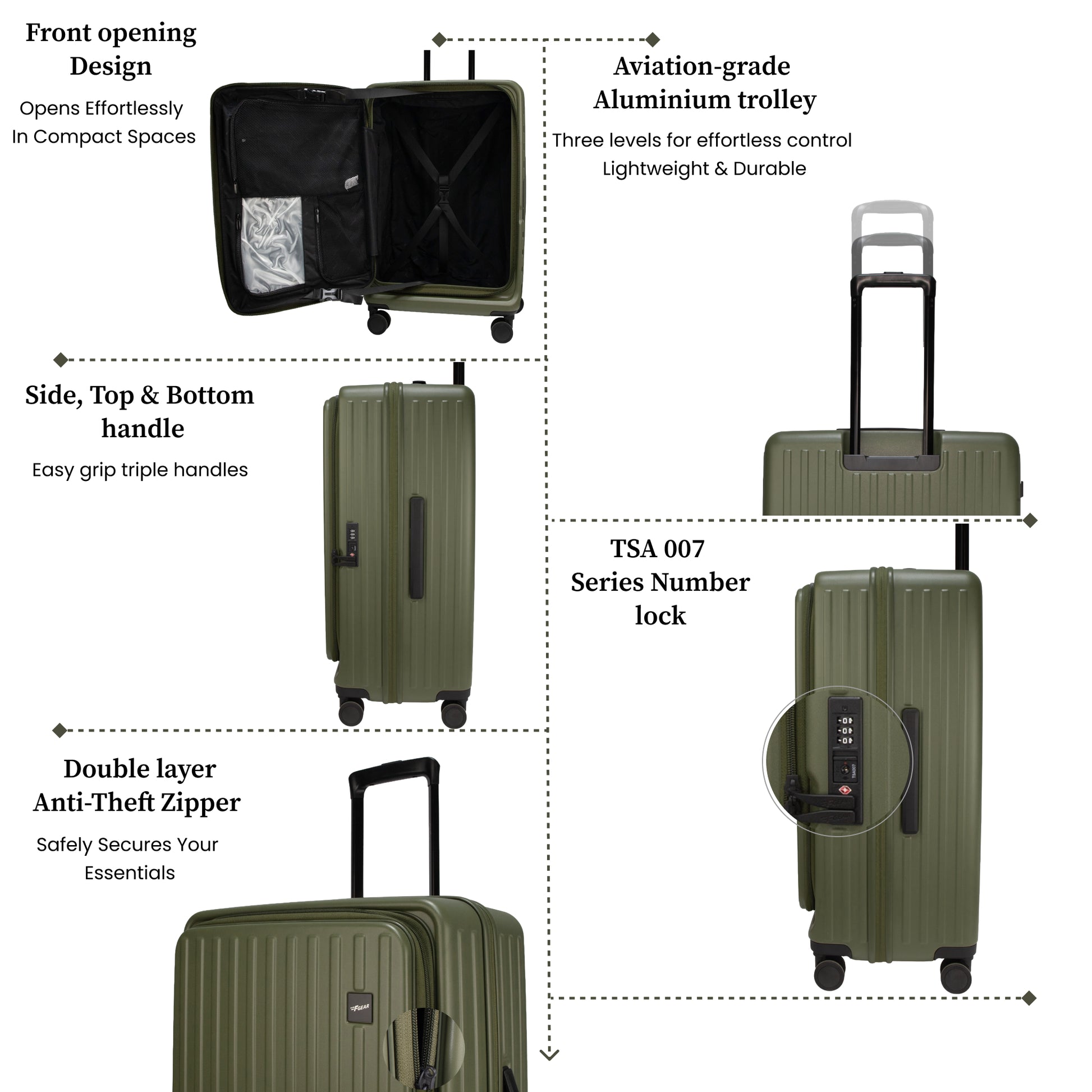 - Secure & Strong Design – TSA 007 series lock, 2-layer Anti-theft Zipper, Aviation-grade Aluminium trolley & a +15% Expandable design for added convenience.