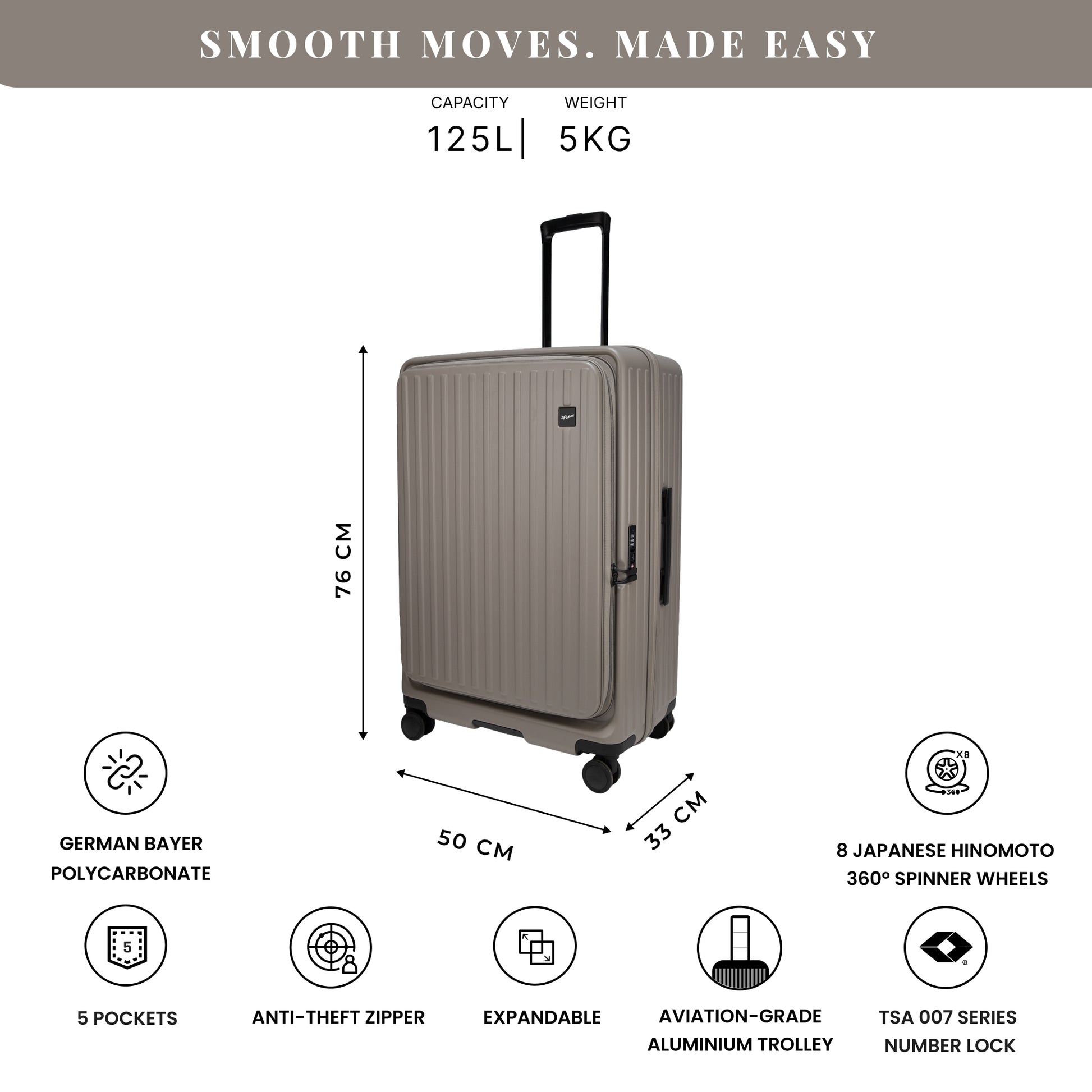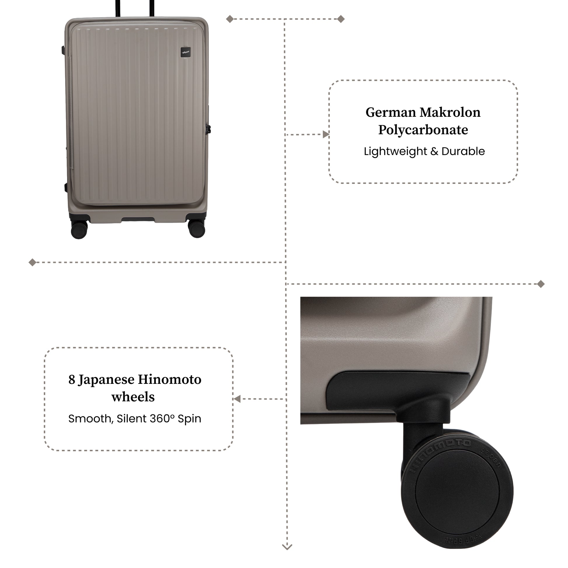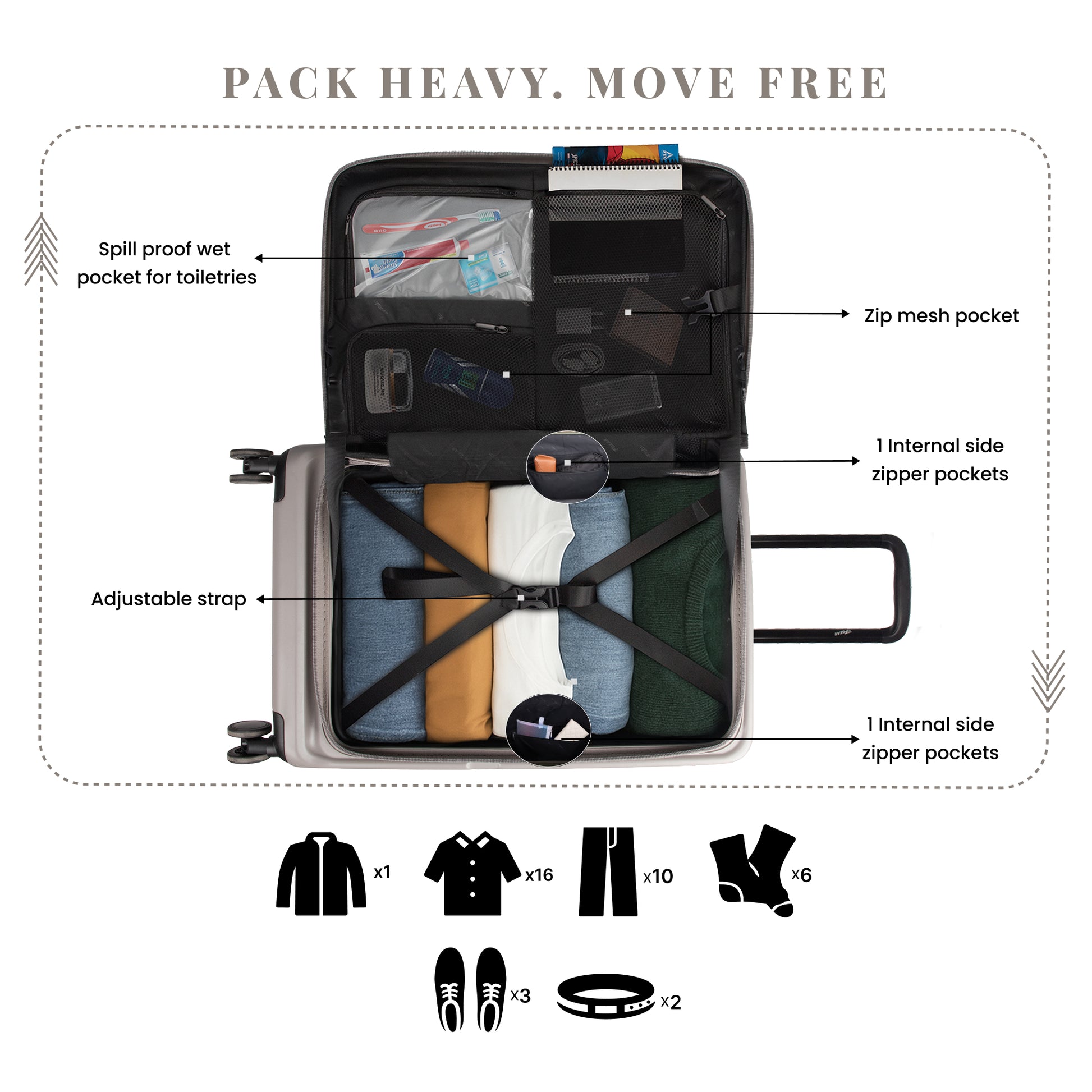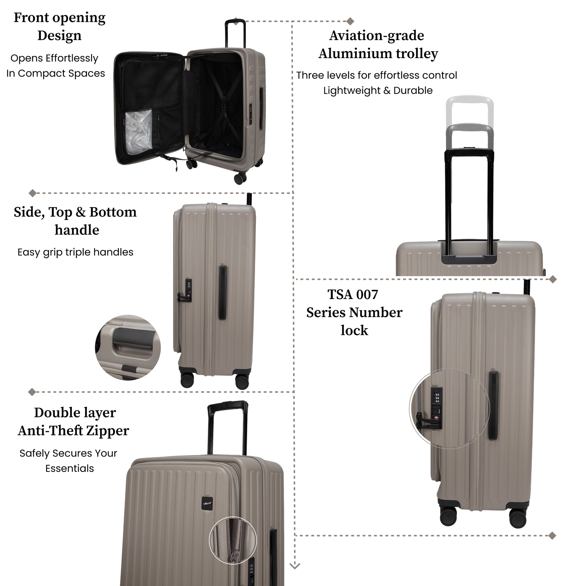 - Secure & Strong Design – TSA 007 series lock, 2-layer Anti-theft Zipper, Aviation-grade Aluminium trolley & a +15% Expandable design for added convenience.