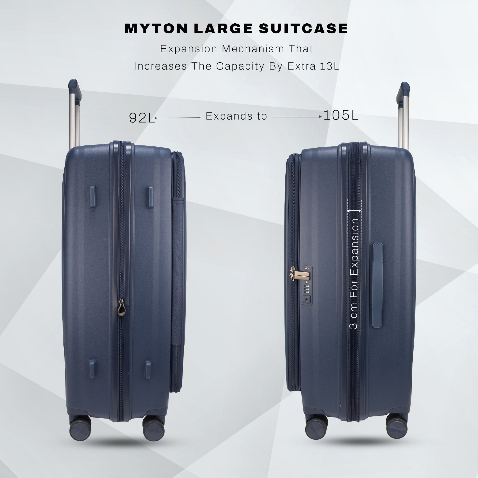 Travel smarter with the F Gear Myton Hard case luggage, a perfect blend of flexibility, durability, and effortless mobility. This front opening suitcase is designed to adapt—fitting into tighter spaces, allowing a little extra packing, and expanding whenever you need more room. Maneuvering is a breeze with its 360° rotational 8-wheel system, engineered with silent spinner wheels for smooth and noise-free gliding across airports and city streets. Comfort is built into every detail: a durable telescopic trolley handle with 3 adjustable levels adapts to your height, while sturdy top and side handles make lifting and carrying convenient. For peace of mind, the F Gear Myton comes equipped with a built-in TSA approved lock and a tamper-proof anti-theft zipper, ensuring your belongings stay secure throughout your journey. Reinforced corners and strong stitching add long-lasting resilience, making it reliable trip after trip. Whether for business, leisure, or family travel, the F Gear Myton is designed to be your trusted travel companion with 3 years carry in warranty for manufacturing defects.
