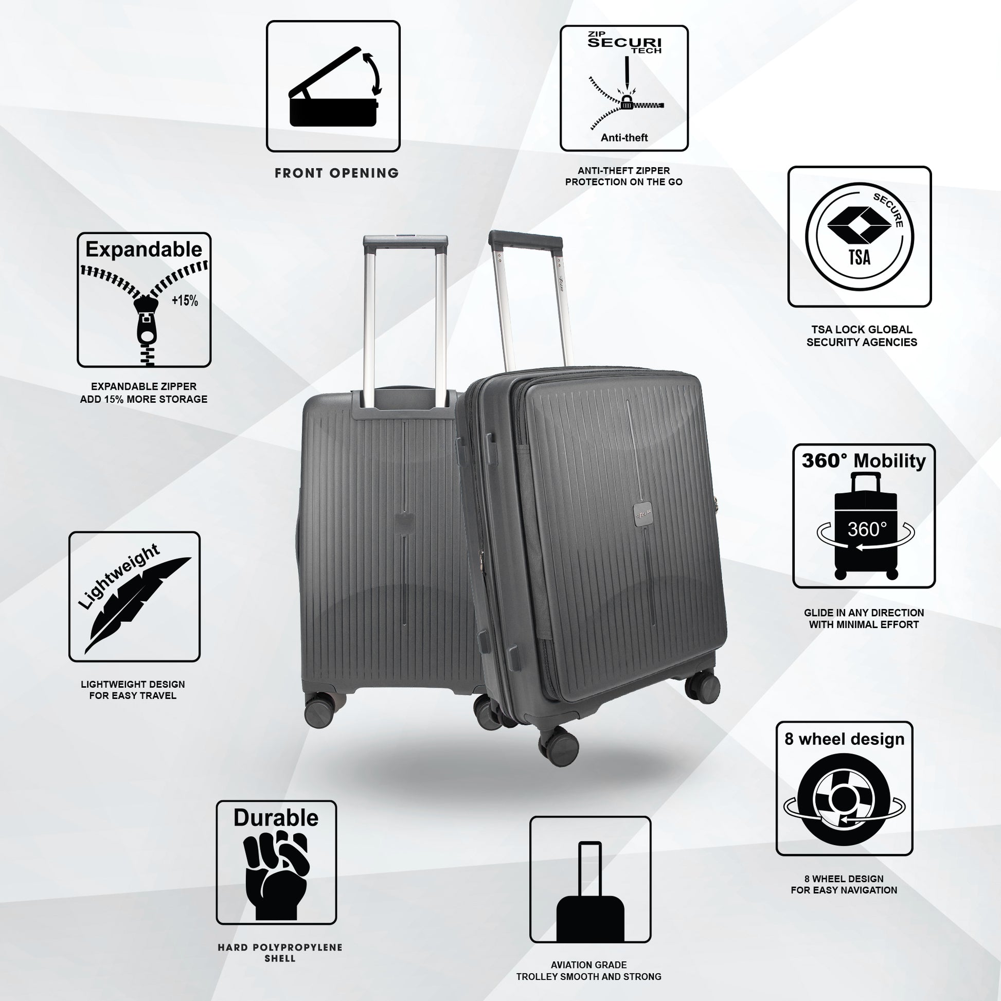F Gear Myton Medium Front Opening Dark Grey Check-in Strolley