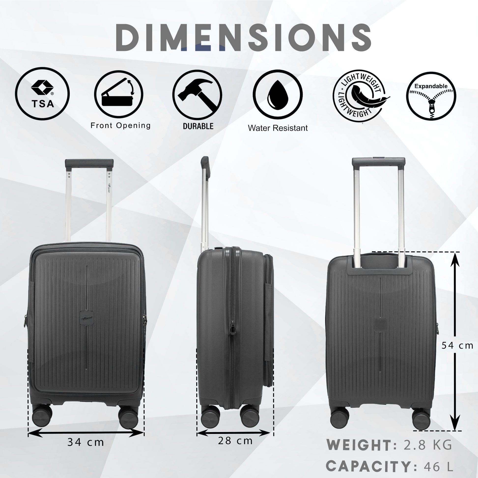 - Easy Front Opening Design – This hard luggage features a single front-opening system, making it simple to pack or access your belongings even in tight spaces such as flights, cars, or compact hotel rooms.