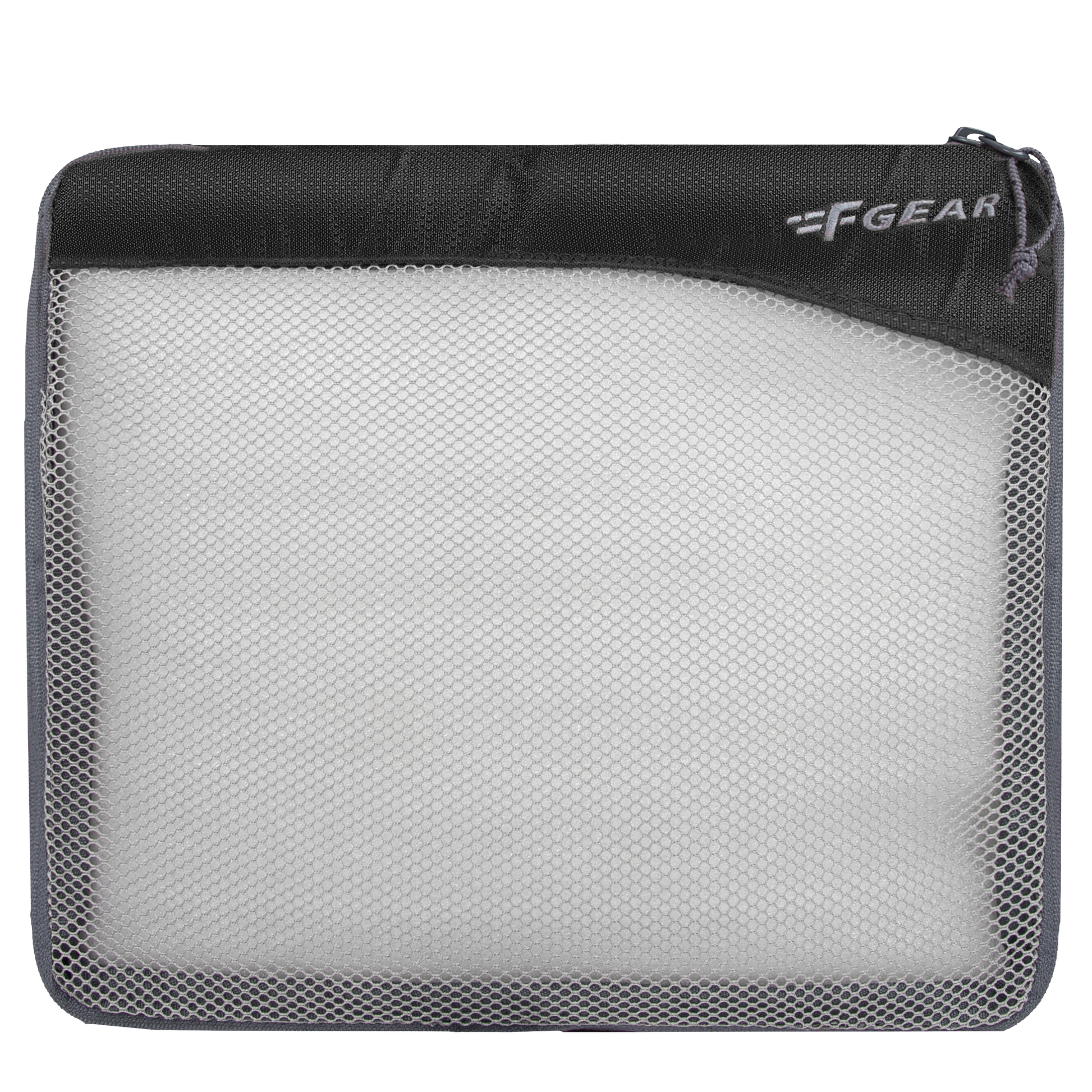 The F Gear Organizy Medium Black Travel Packing Cube - lightweight, quick-drying organizer bag is crafted from durable polyester and net fabric with two compartments for easy item visibility. Ideal for organizing clothes, shoes, toiletries, and makeup, it helps neatly arrange your items, saving space and reducing wrinkles or damage. With an 8-liter capacity, dimensions of 30 x 12 x 23 cm, and weighing just 125 g, it fits easily in airline carry-ons, backpacks, or luggage. Suitable for travel, outdoor activities, and daily storage, the bag comes with a 1-year warranty for manufacturing defects, ensuring long-lasting use.