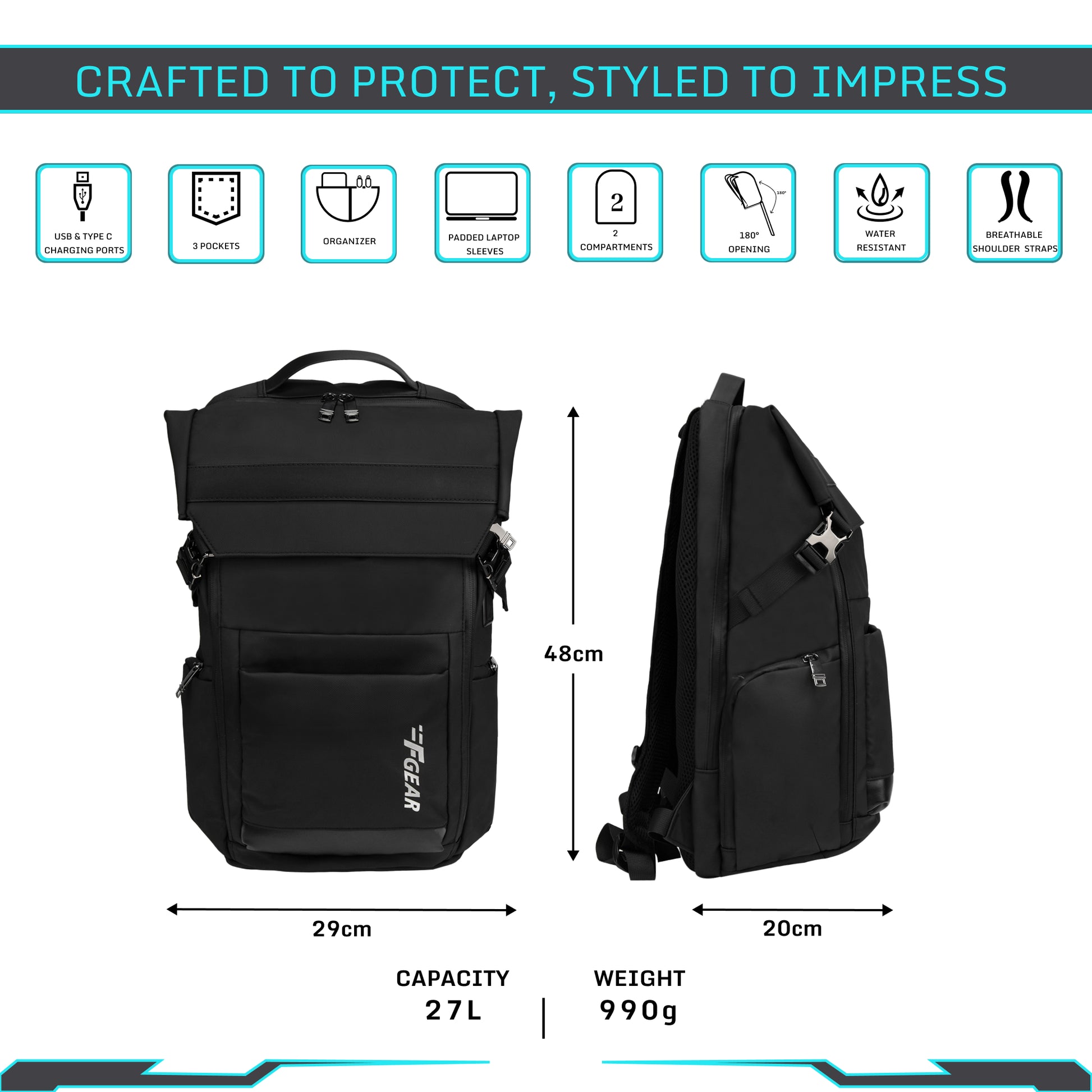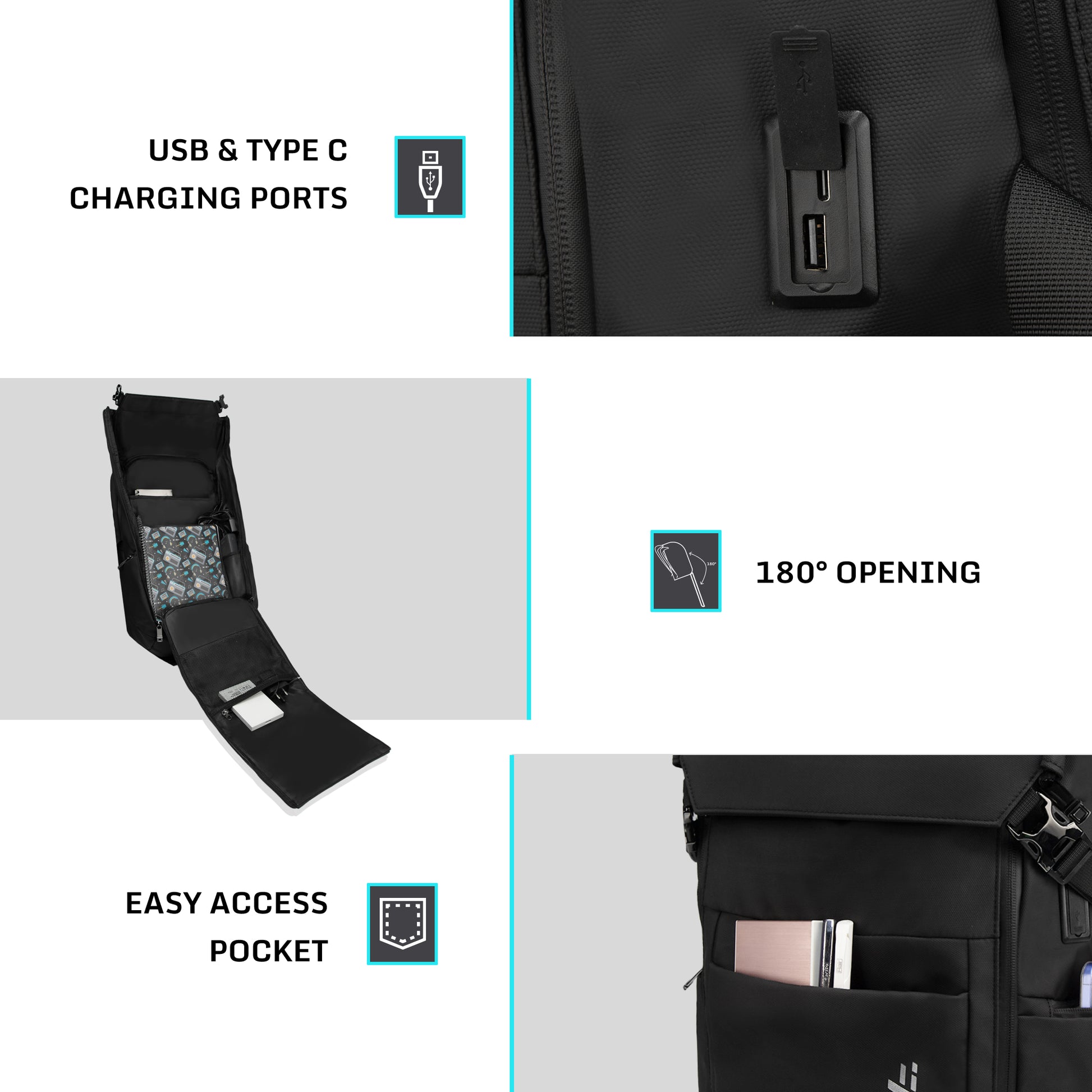 - Smart Everyday Backpack – Designed for daily office routines, college use, and urban travel with a clean, versatile all-black design