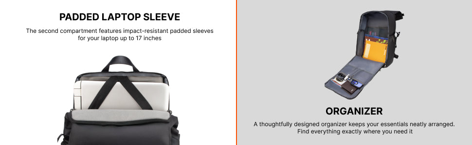 Features 2 main compartments and 5 multi-utility pockets, offering dedicated space for a 17-inch laptop, books, and other essentials. -