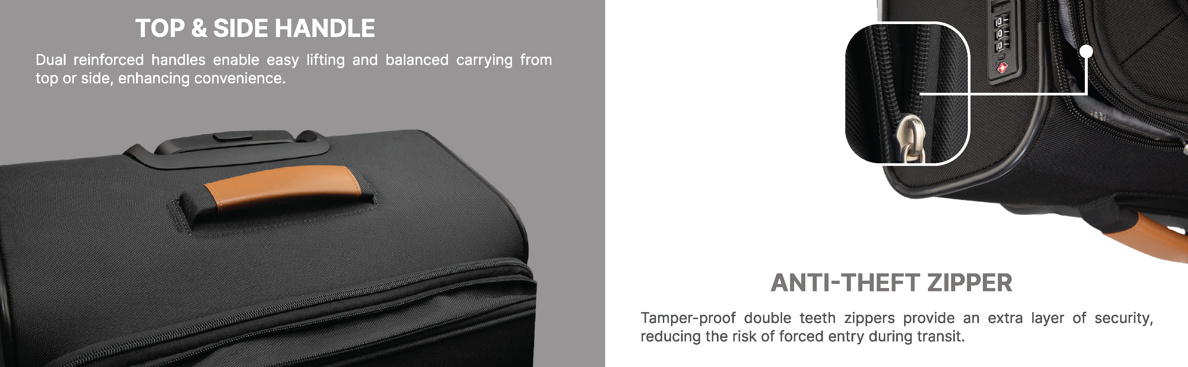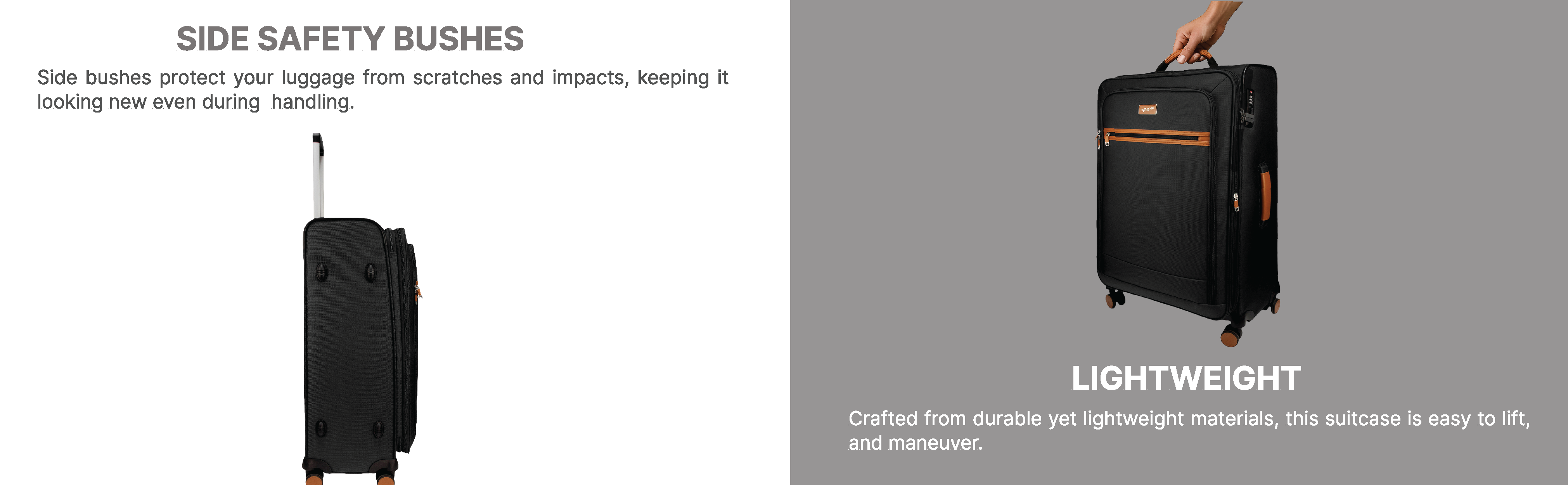 - Side Handle (For Medium & Large Sizes): Strong side grip makes it convenient to carry and lift your suitcase sideways, especially when handling heavier loads.