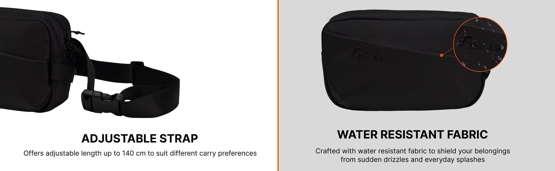 The F Gear Sterling 3L Crossbody Sling Bag is designed for effortless everyday carry with a refined, modern edge. Crafted from soft-touch premium fabric, it delivers a smooth, luxe feel while staying lightweight and durable for daily use. Its clean 1-compartment design keeps things simple yet organised, featuring two pockets to neatly store your phone, wallet, keys, and other essentials. The compact 3L capacity makes it ideal for on-the-go lifestyles—perfect for city days, travel, or casual outings. Weighing just 300 g, the Sterling sling feels easy and comfortable all day. The adjustable crossbody strap (up to 150 cm) allows a custom fit, whether worn across the body or over the shoulder. Sized at 25 × 8 × 15 cm, it strikes the perfect balance between minimal form and everyday functionality. Finished in classic black and backed by a 1 Year Carry-In Warranty, the F Gear Sterling Crossbody Sling is your go-to essential for a clean, elevated everyday look.