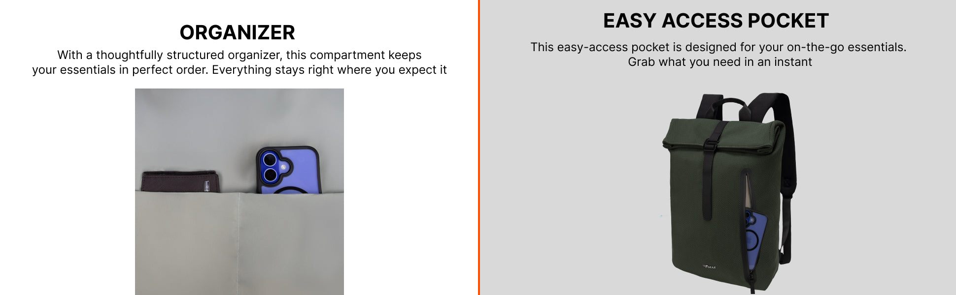 - Smart & Practical Organization: Designed with 1 main compartment and 1 front pocket, along with an internal organizer to keep essentials, cables and accessories neatly arranged.