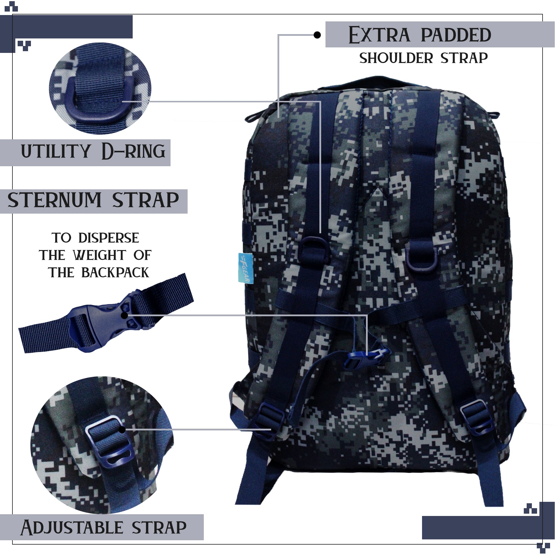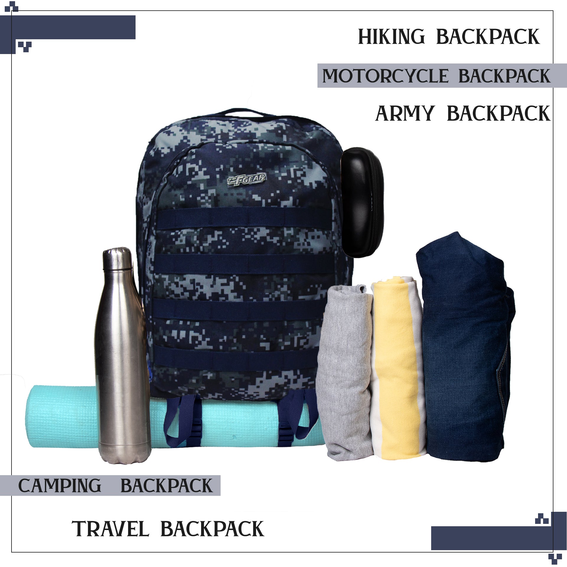 Are you looking for a rough and tough style High fashion Military themed Unisex backpack, then your search ends here. FGear presents Tricoder with one large main compartment and contemporary camouflage print, this backpack is made of rugged and water resistance material with lots of accessory and MOLLE loops, sternum straps and foam back support panel. It is an ideal Travel backpack, Camping backpack, Hiking backpack, Motorcycle backpack and Army backpack. The backpack comes with a 1-year carry-in warranty for all manufacturing defects.
