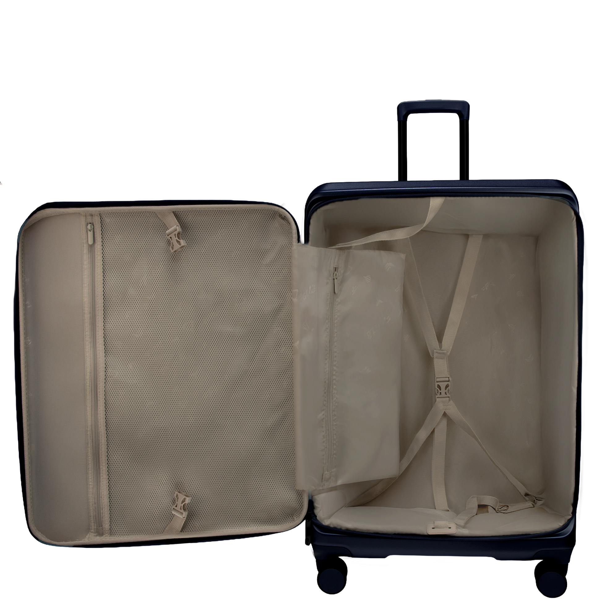 Inside, the Valencia offers a thoughtfully designed layout with premium beige lining and 2 organiser pockets to keep everything neatly arranged. The built-in expander adds extra packing capacity whenever needed. Every suitcase also comes with a protective storage cover and a magic eraser, ensuring your luggage stays clean, fresh, and well-protected trip after trip.