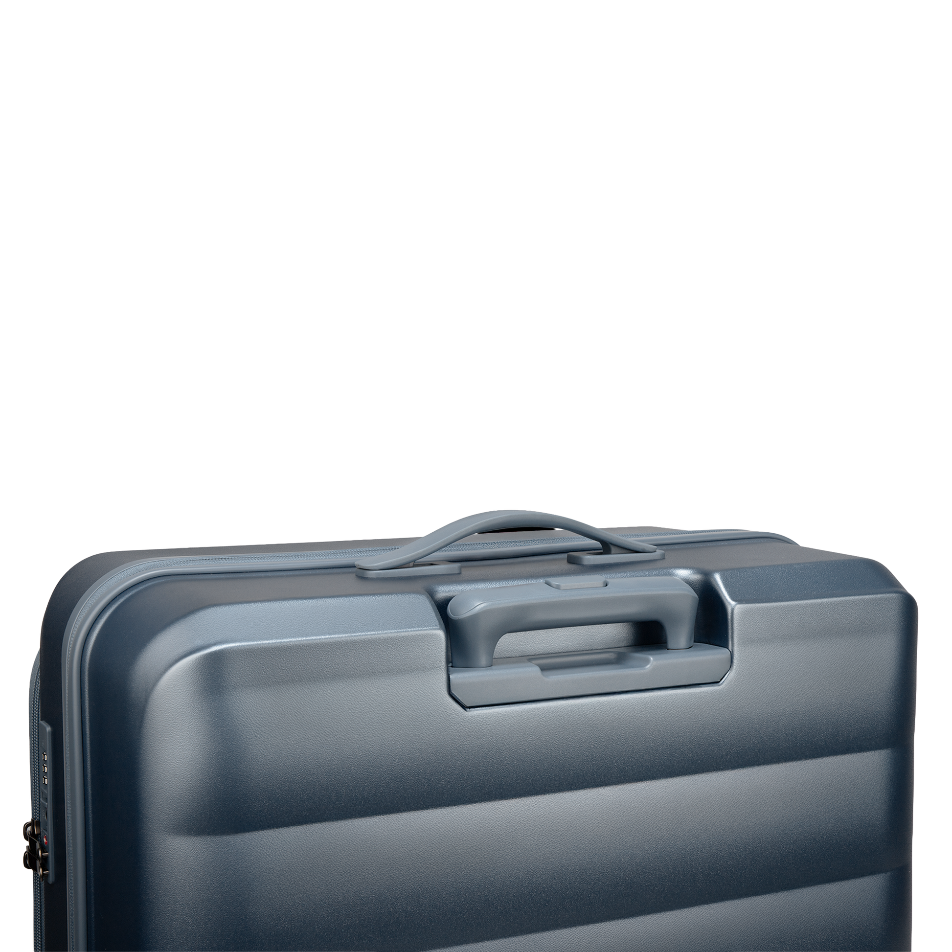 Engineered with a tough yet lightweight German Makrolon Polycarbonate shell, this hard-sided suitcase delivers superior durability and impact resistance. The addition of 8 Super Silent 360° spinner wheels ensures ultra-smooth and silent movement, no matter where your journey takes you. A TSA-approved lock and a solid aluminium 3-level telescopic trolley provide secure, stable, and comfortable handling throughout your travels. The medium size also includes dual handles (top & side) for effortless lifting.