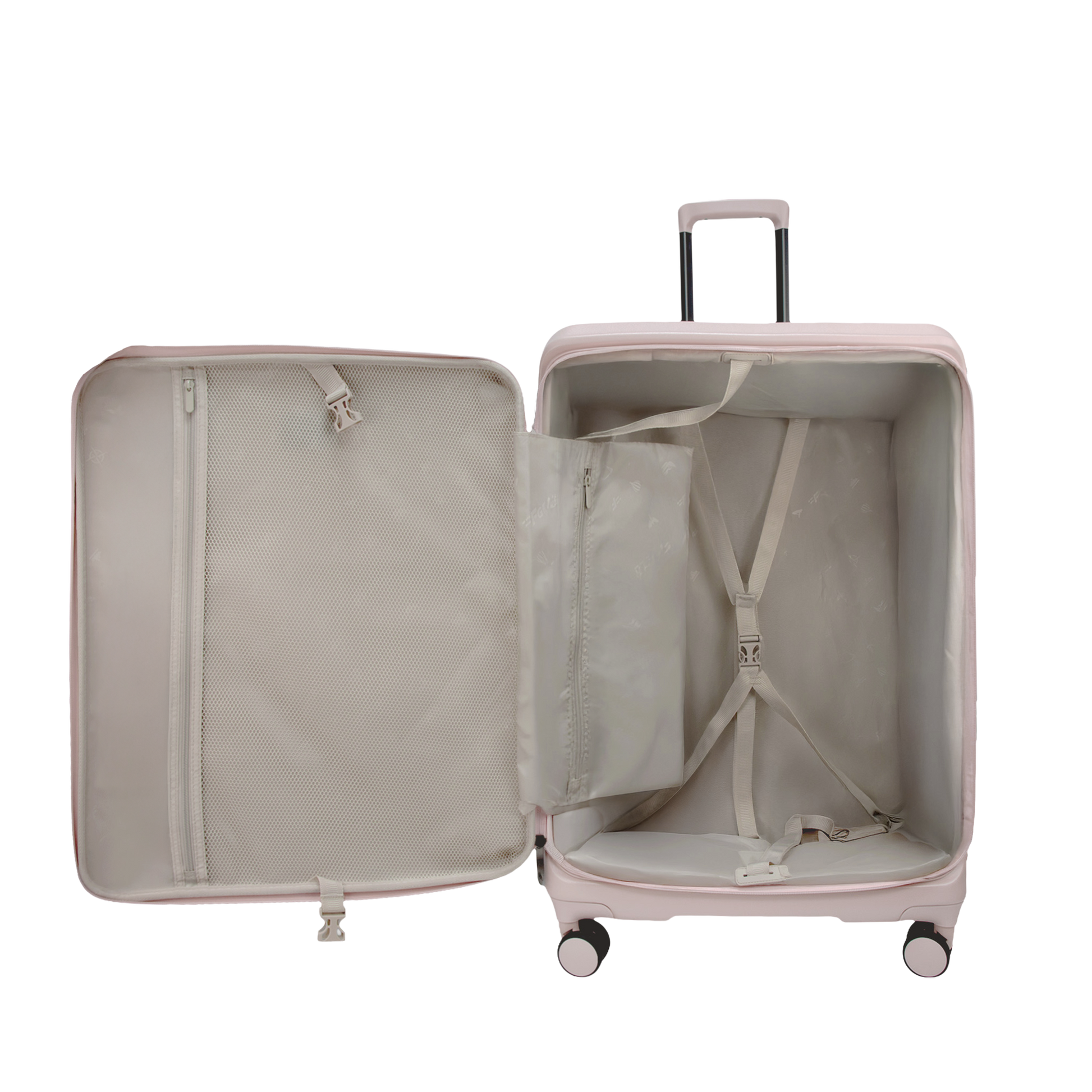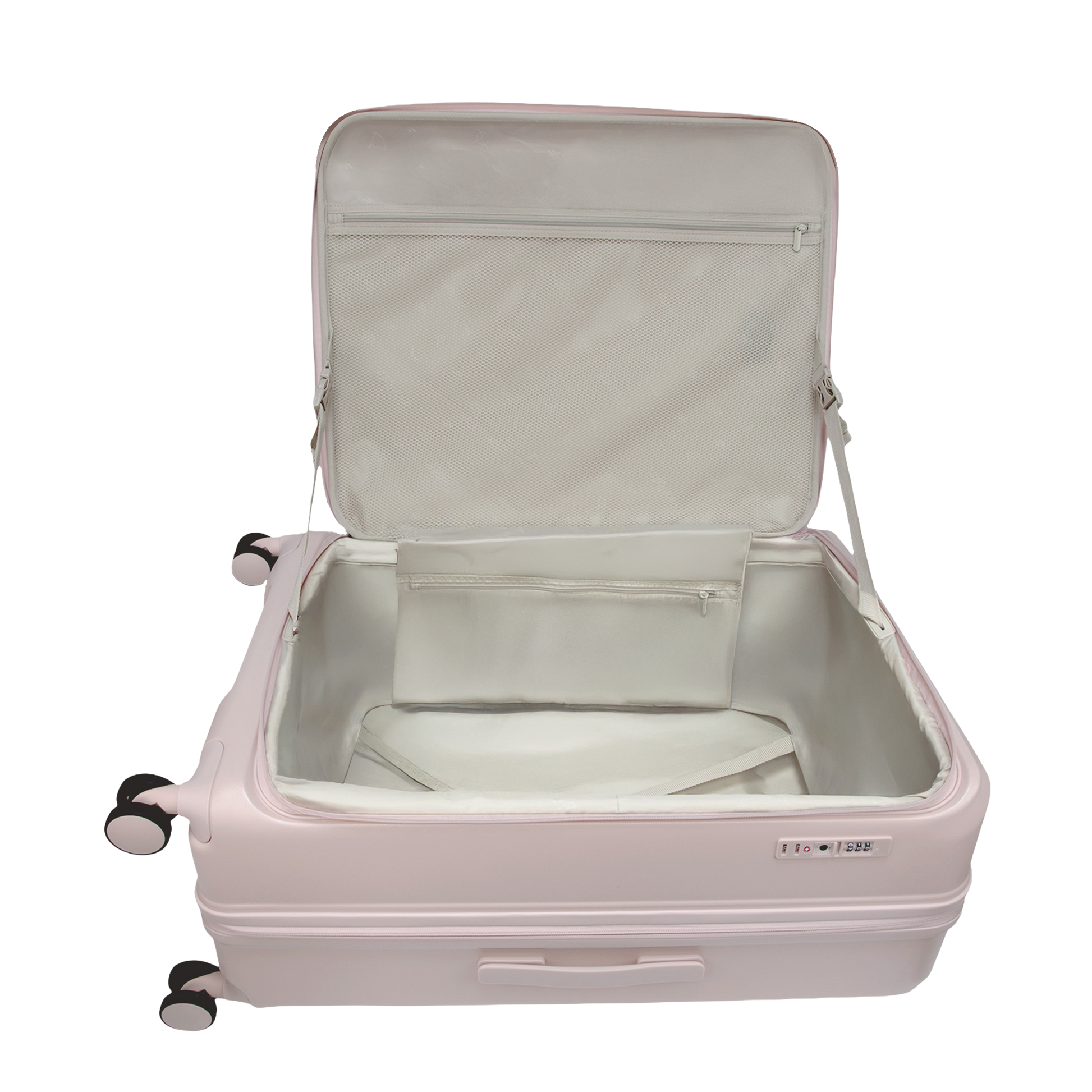 Inside, the Valencia offers a thoughtfully designed layout with premium beige lining and 2 organiser pockets to keep everything neatly arranged. The built-in expander adds extra packing capacity whenever needed. Every suitcase also comes with a protective storage cover and a magic eraser, ensuring your luggage stays clean, fresh, and well-protected trip after trip.
