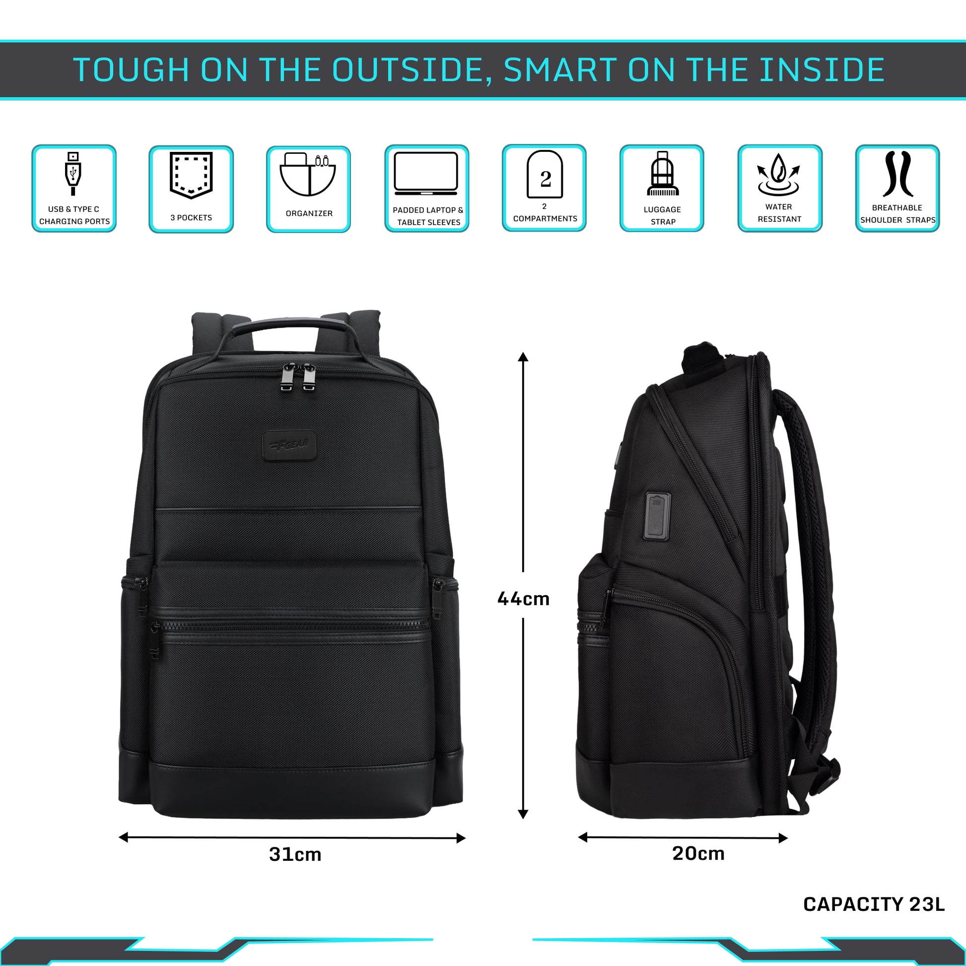The F Gear Varello Premium Black Laptop Backpack is crafted for those who seek spacious organization with a refined, modern aesthetic. Featuring 2 roomy compartments, it offers exceptional structure for work, college and frequent travel.
