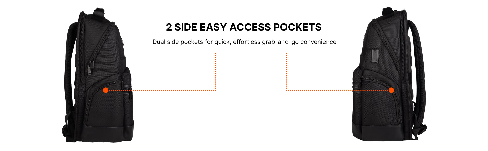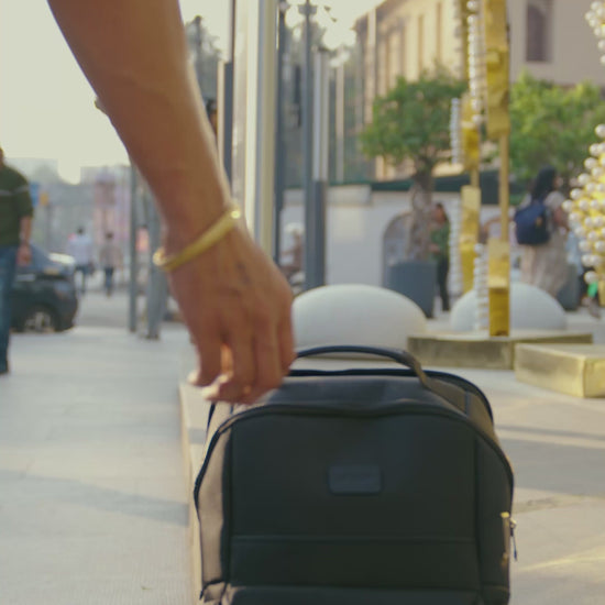 With 2 compartments and 1 front pocket, the backpack keeps essentials, tech accessories and daily items neatly arranged without compromising on style. Its premium water-resistant fabric holds shape beautifully while protecting your belongings. The luggage strap lets you securely mount the backpack onto a trolley, making airport travel effortless and hands-free.