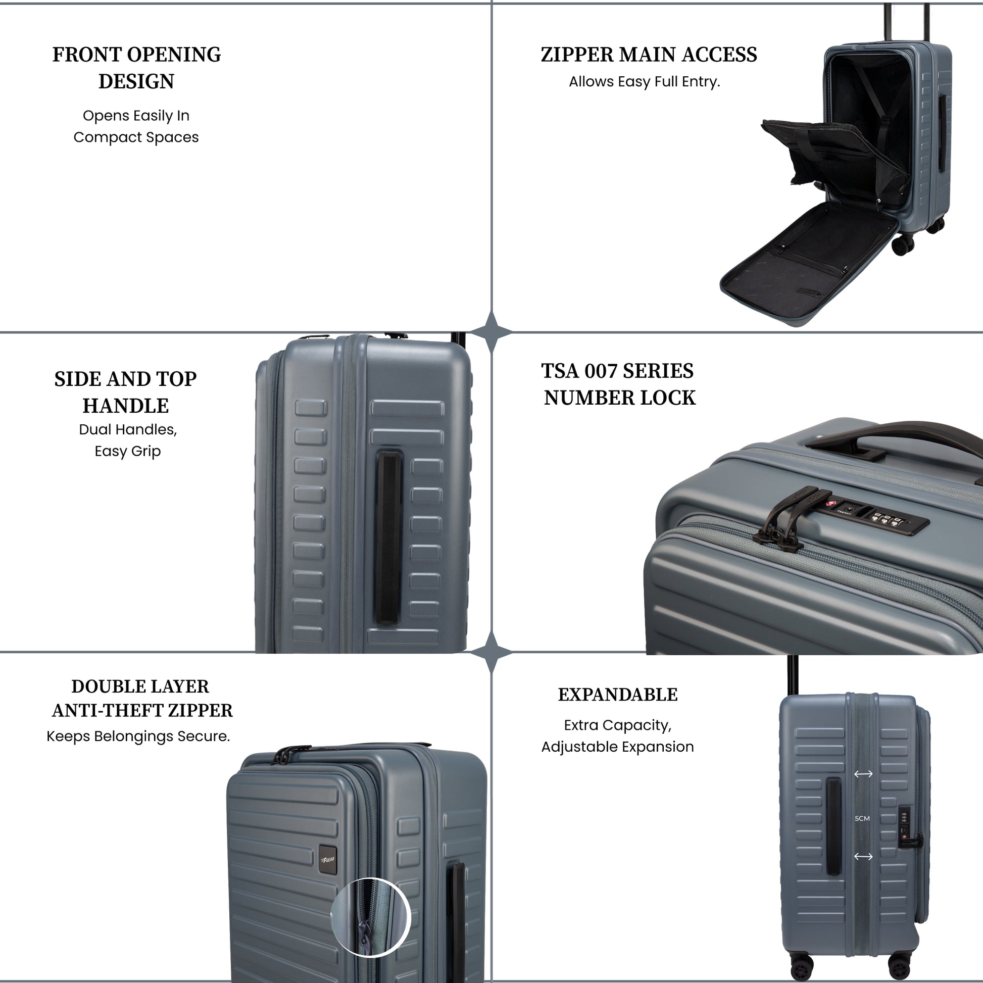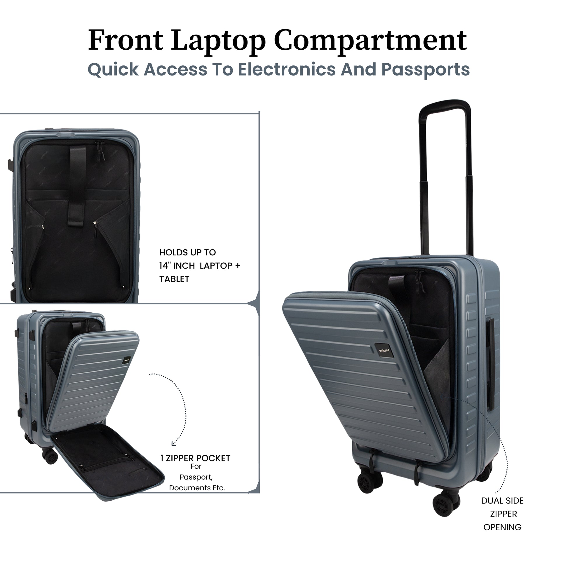 Experience modern convenience and superior protection with the F Gear Windsor Front-Opening Cabin Trunk-Style Hard Luggage. Designed for travellers who value quick accessibility, it features a smart front-opening compartment with padded laptop and tablet sleeves, allowing you to reach your devices or essentials instantly—perfect during airport security checks or while travelling in tight spaces.