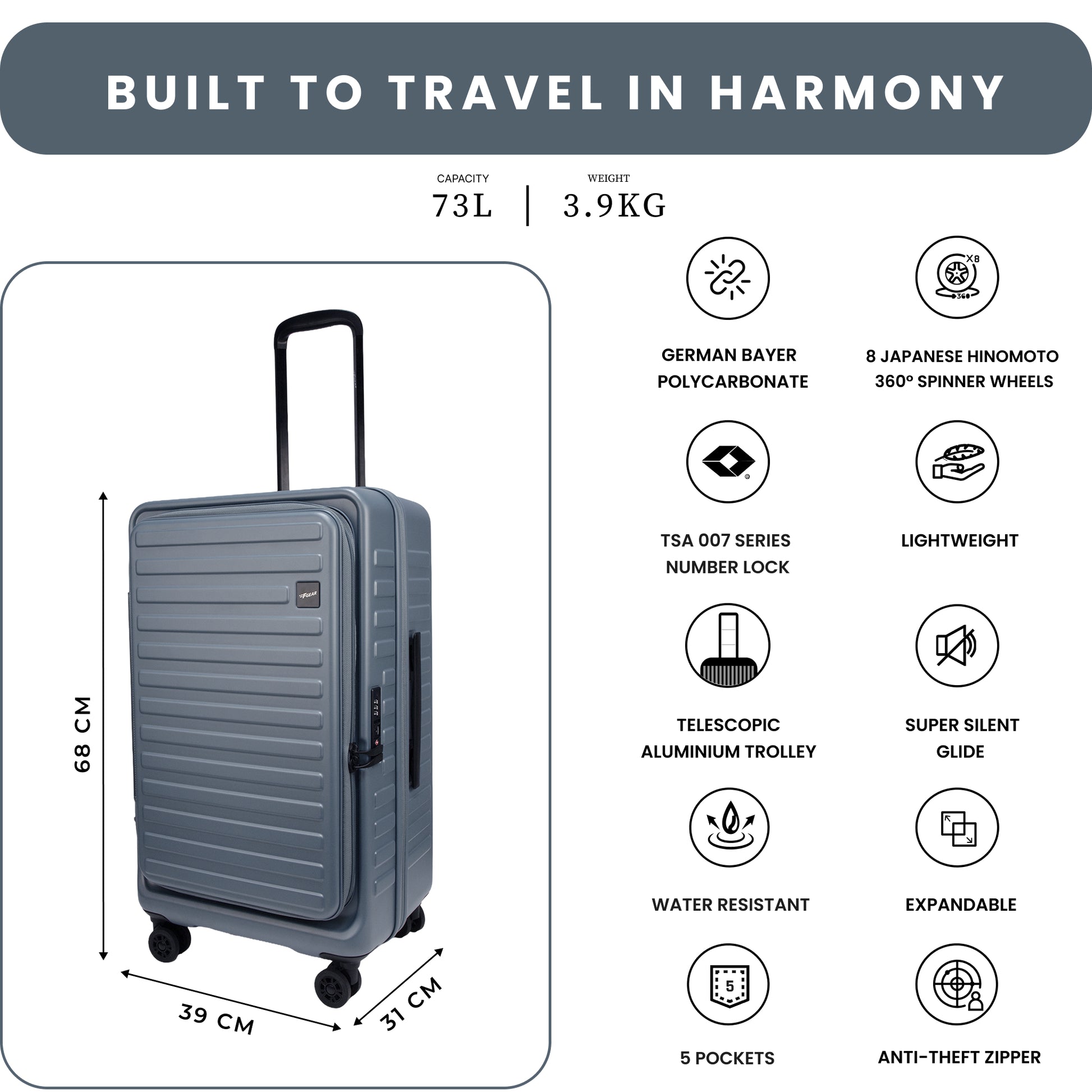 Upgrade your travel experience with the F Gear Windsor Front-Opening Medium Trunk-Style Hard Luggage, designed to offer smarter organisation and effortless accessibility. The practical front-opening compartment allows you to arrange or reach your essentials with ease, making it especially convenient in tight spaces such as flights, hotel rooms or airport queues.