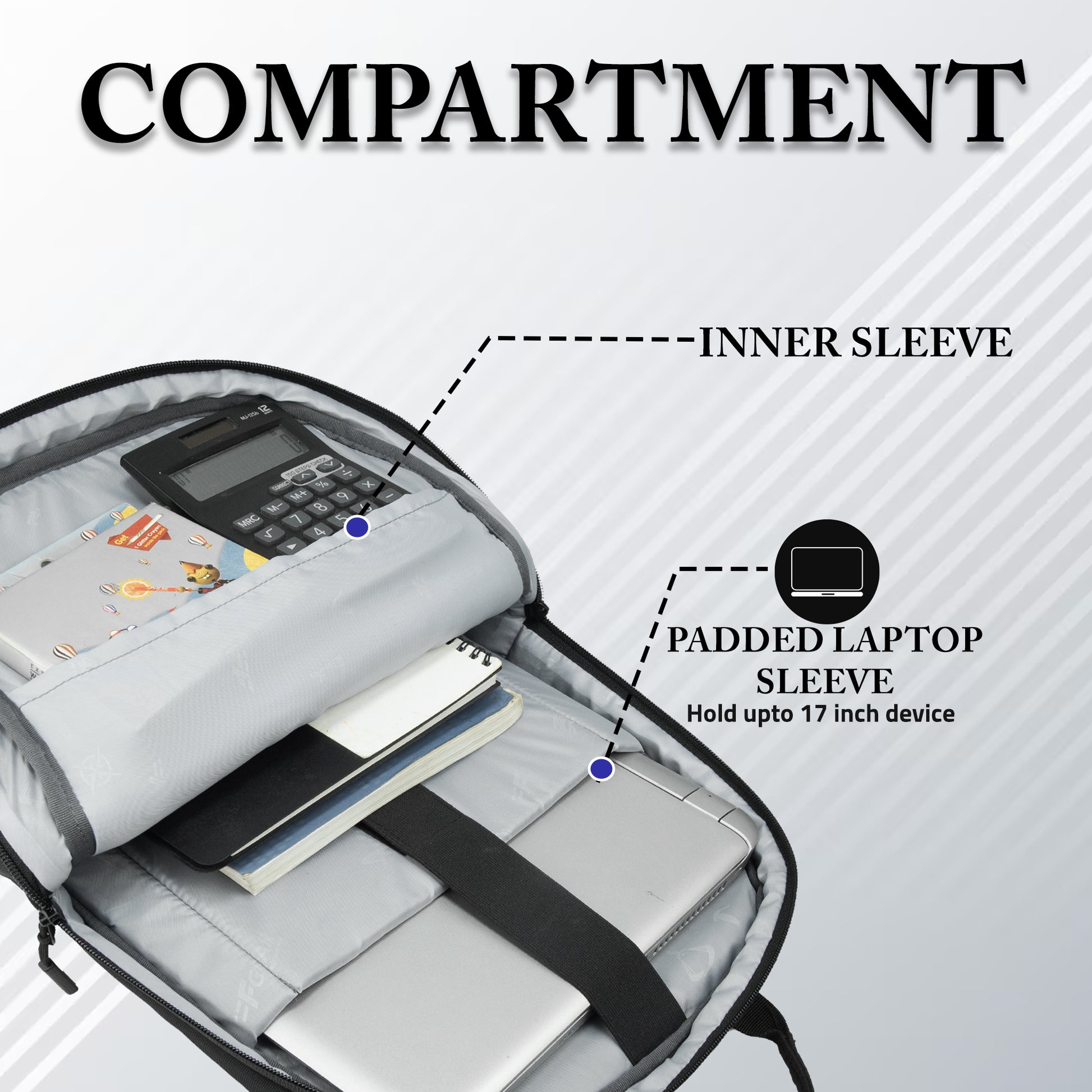 Carry your laptop and daily essentials in style with the F Gear Yoko Compact Black Laptop Backpack. Designed with a slim 10L profile, this lightweight backpack is perfect for office, college, and everyday commutes. The main compartment features a padded laptop sleeve that securely fits laptops up to 17 inches, along with an additional inner sleeve for books, files, or documents. A quick-access front pocket keeps smaller items like your phone, wallet, or stationery within easy reach.